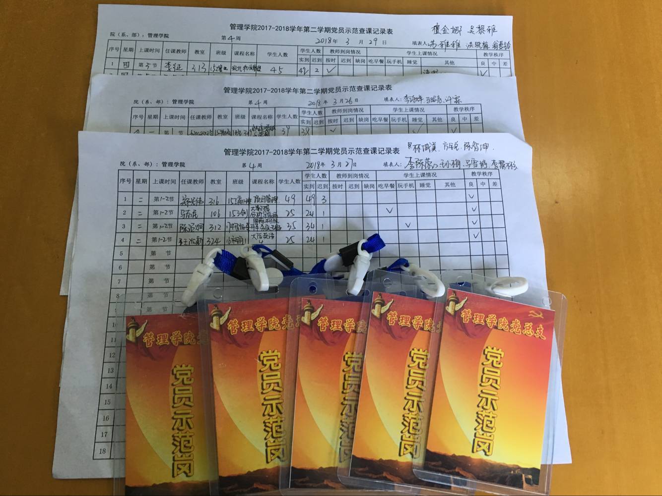 党员示范查课工作牌和记录表