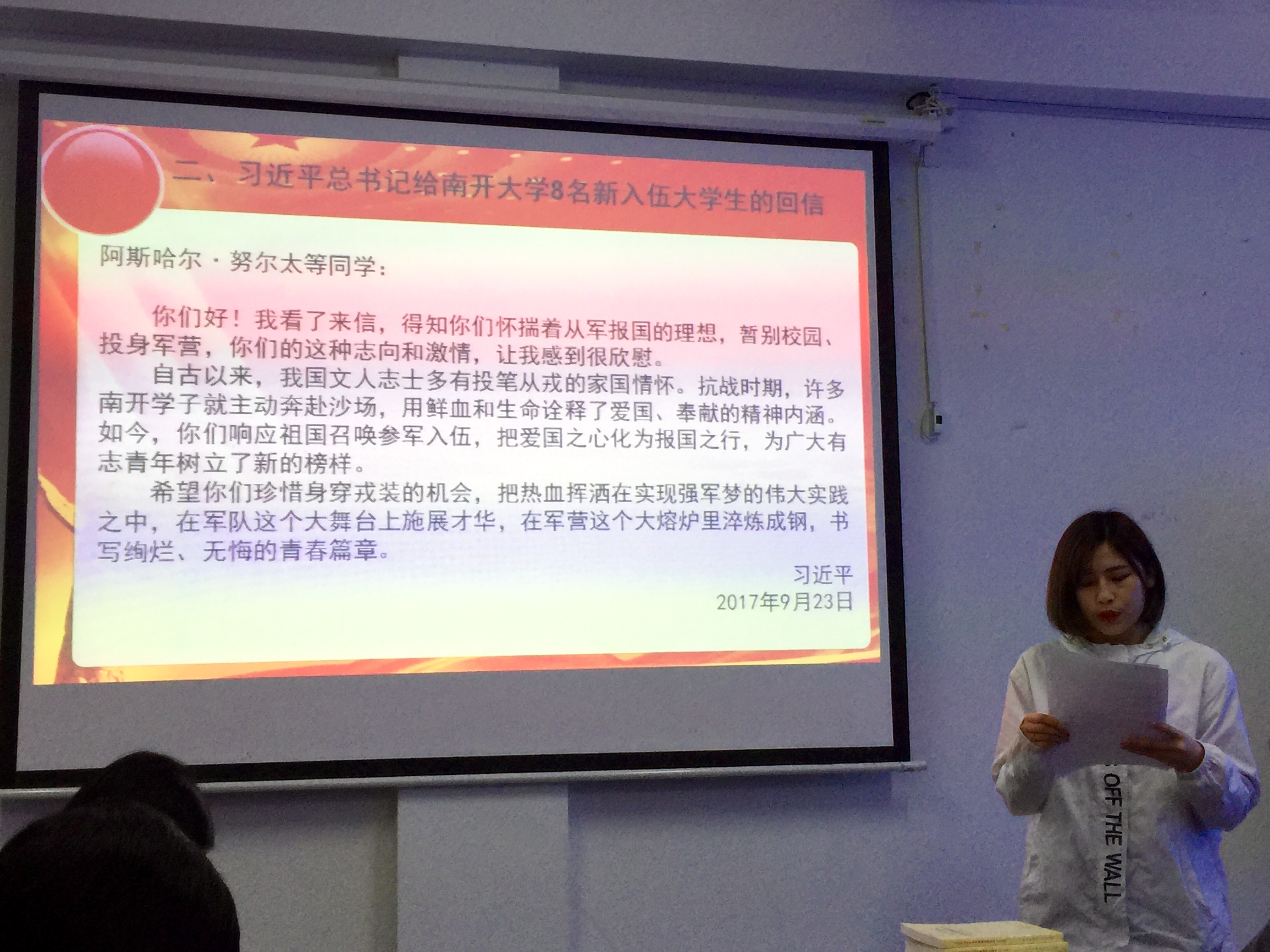 朗读《习近平总书记给南开大学8名新入伍大学生的回信》