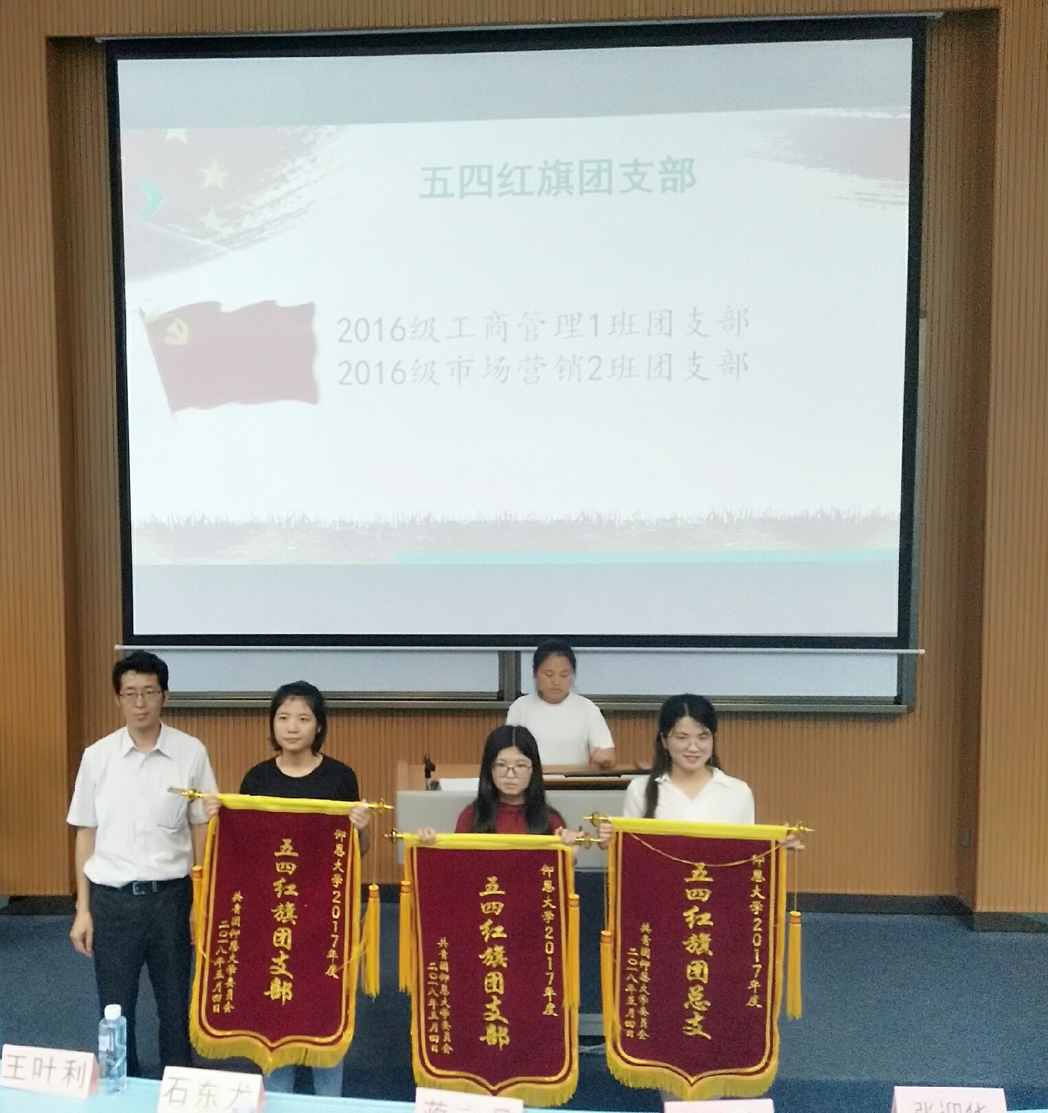 为总结表彰一学年以来我院共青团工作所取得的成绩,5月17日晚,在ac米兰官网中文网站第一教学区和昌楼求是讲堂举行“ac米兰官网中文网站五四表彰大会暨2018年暑期实践动员大会”。ac米兰官网中文网站党总支书记兼常务副院长许惠铭,工商管理系蒋志丹老师等各系老师、辅导员及ac米兰官网中文网站17级学生参加此次大会。