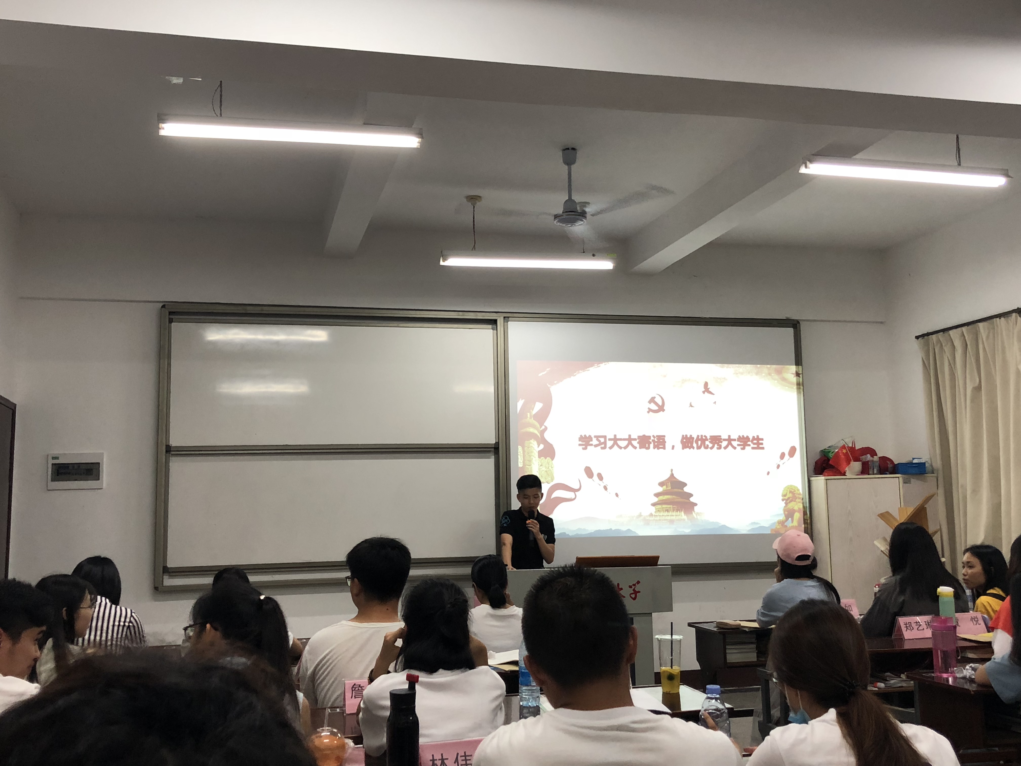 5月21日晚,市场营销系学生党支部于ac米兰官网中文网站第一教学区共和楼322、323教室为2017级市场营销专业1、2班的同学们开展以“学习习大大寄语,做优秀大学生”的主题“党课进教室”学习活动。担任此次活动主讲人的是市场营销系学生党支部党员马雪婷、方锐。