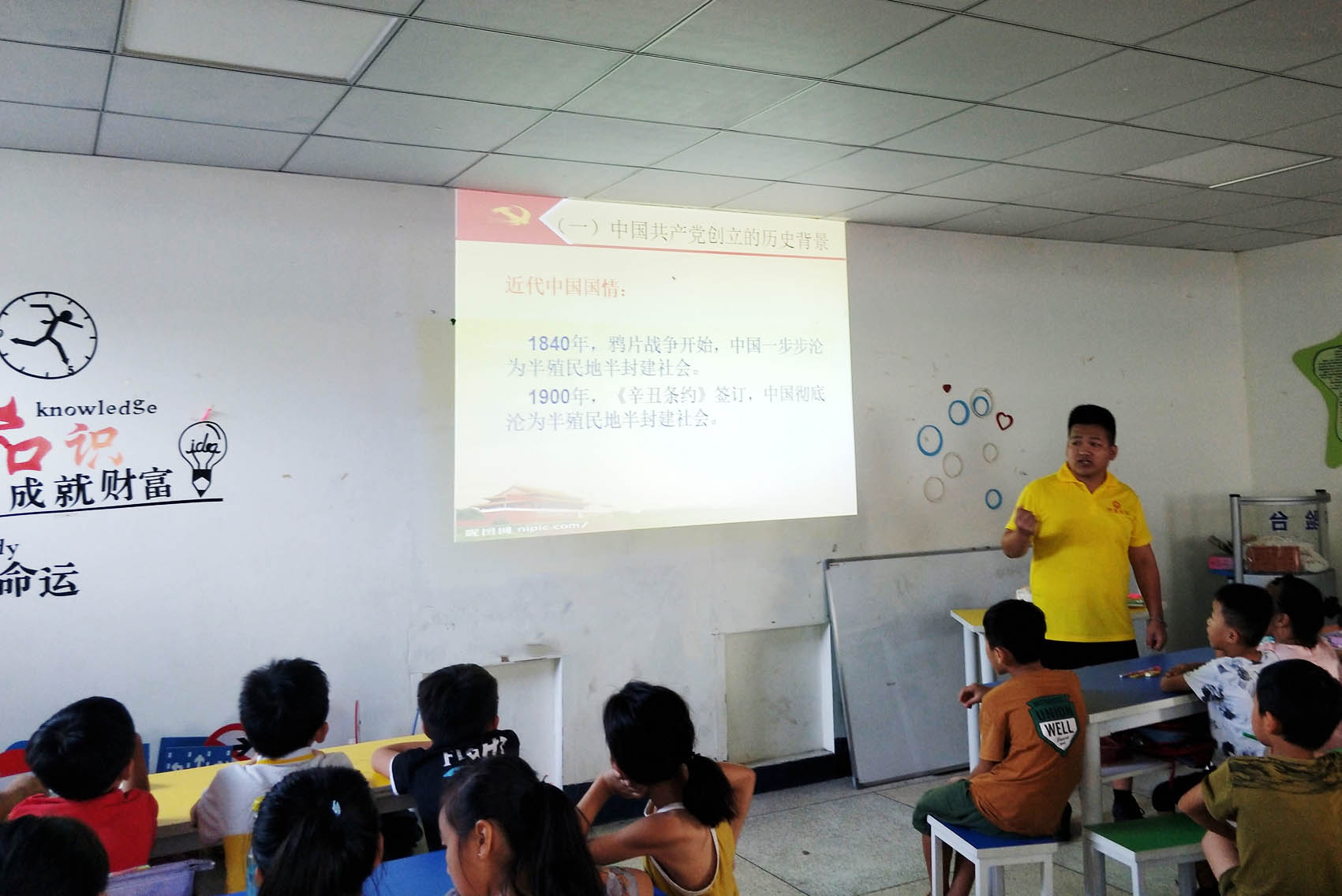 实践队员为小朋友讲党史、国情