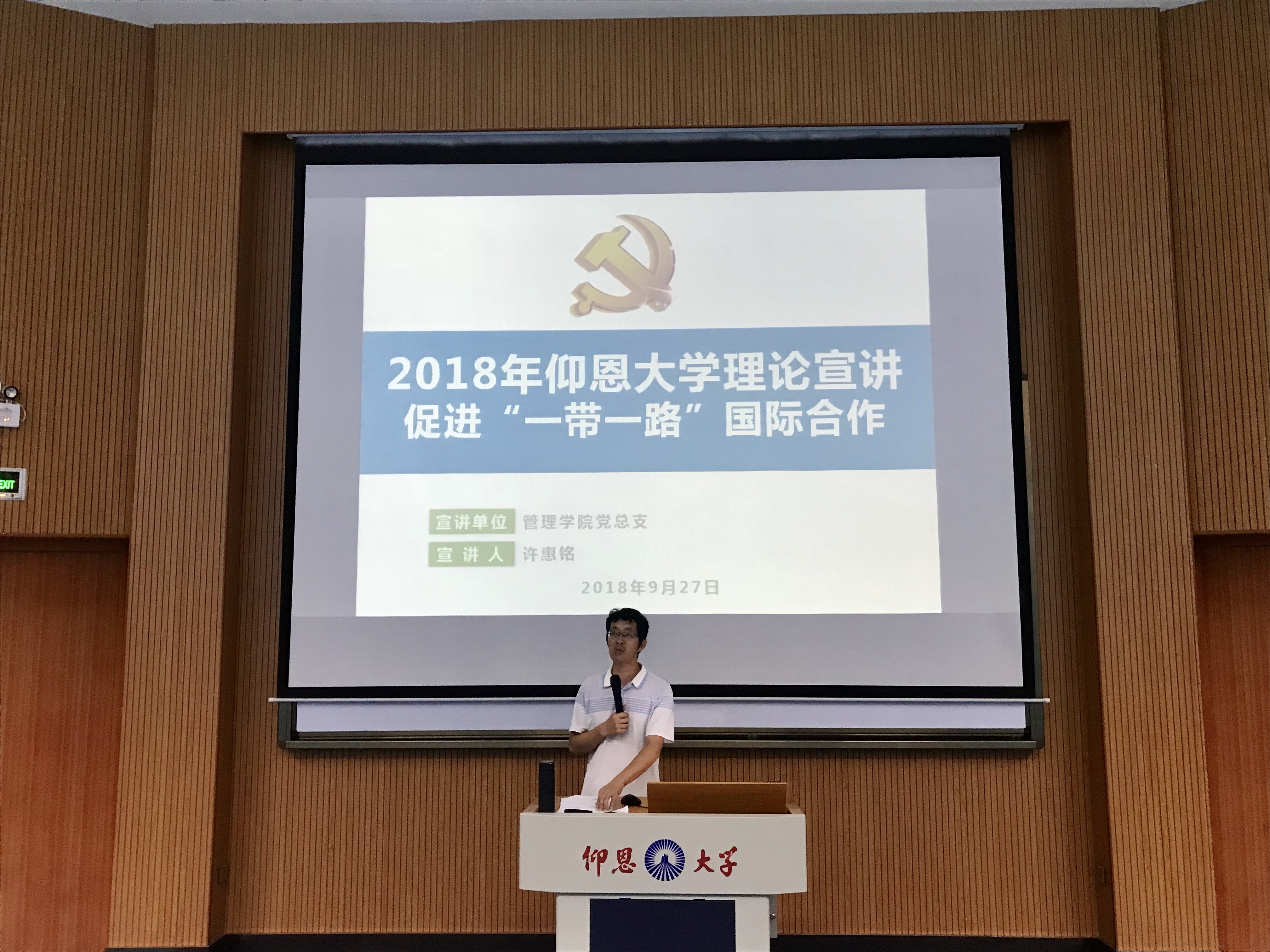 9月27日下午,我院在第一教学区和昌教学楼求是讲堂开展了以《促进“一带一路”国际合作》为主题的理论宣讲活动。ac米兰官网中文网站党总支书记兼常务副院长许惠铭为全院师生党员及入党积极分子作主题宣讲。