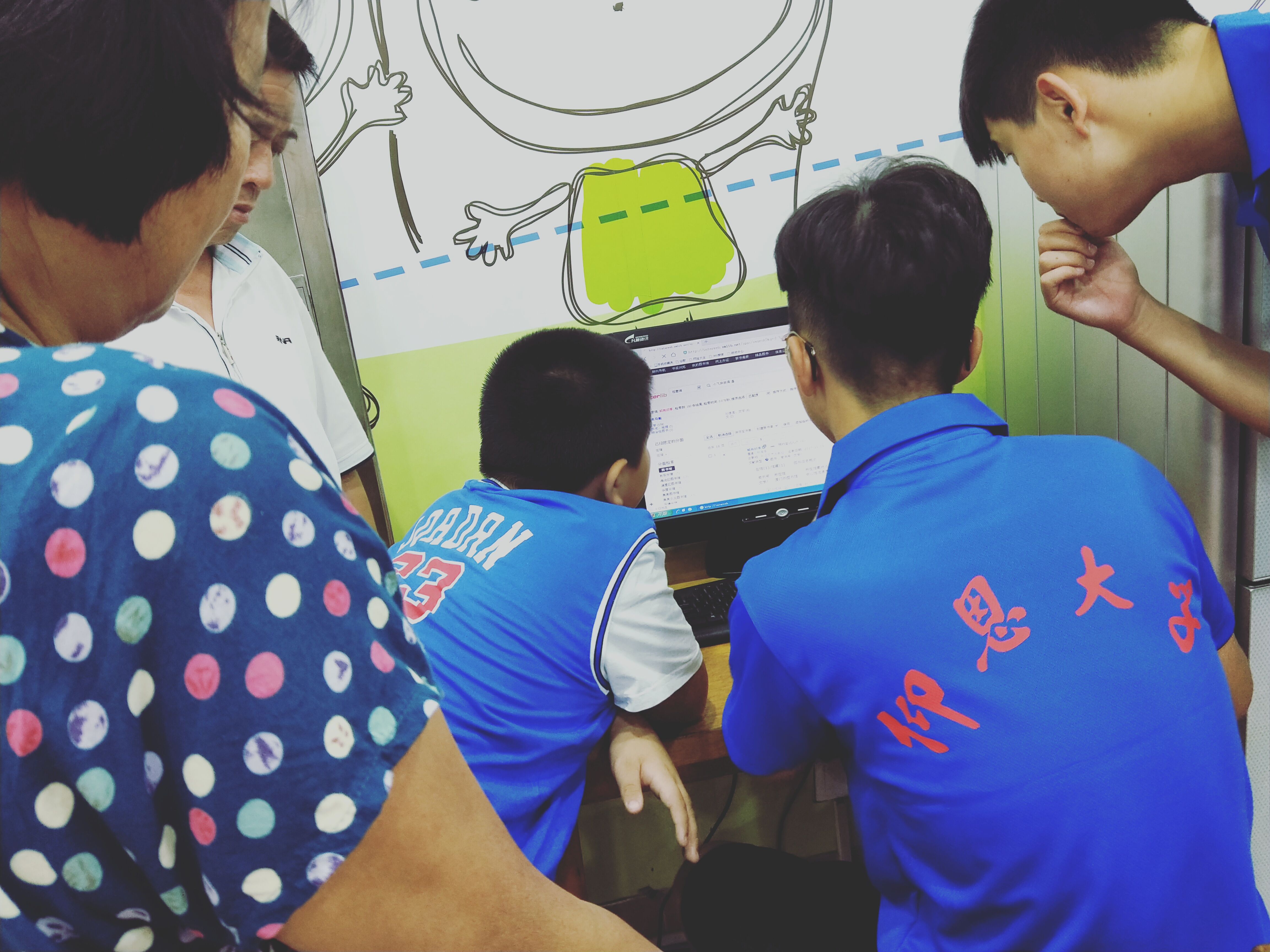 【ac米兰官网中文网站“善行天下”赴正能量公益服务中心暑期实践队】队员在观看历史图片及故事