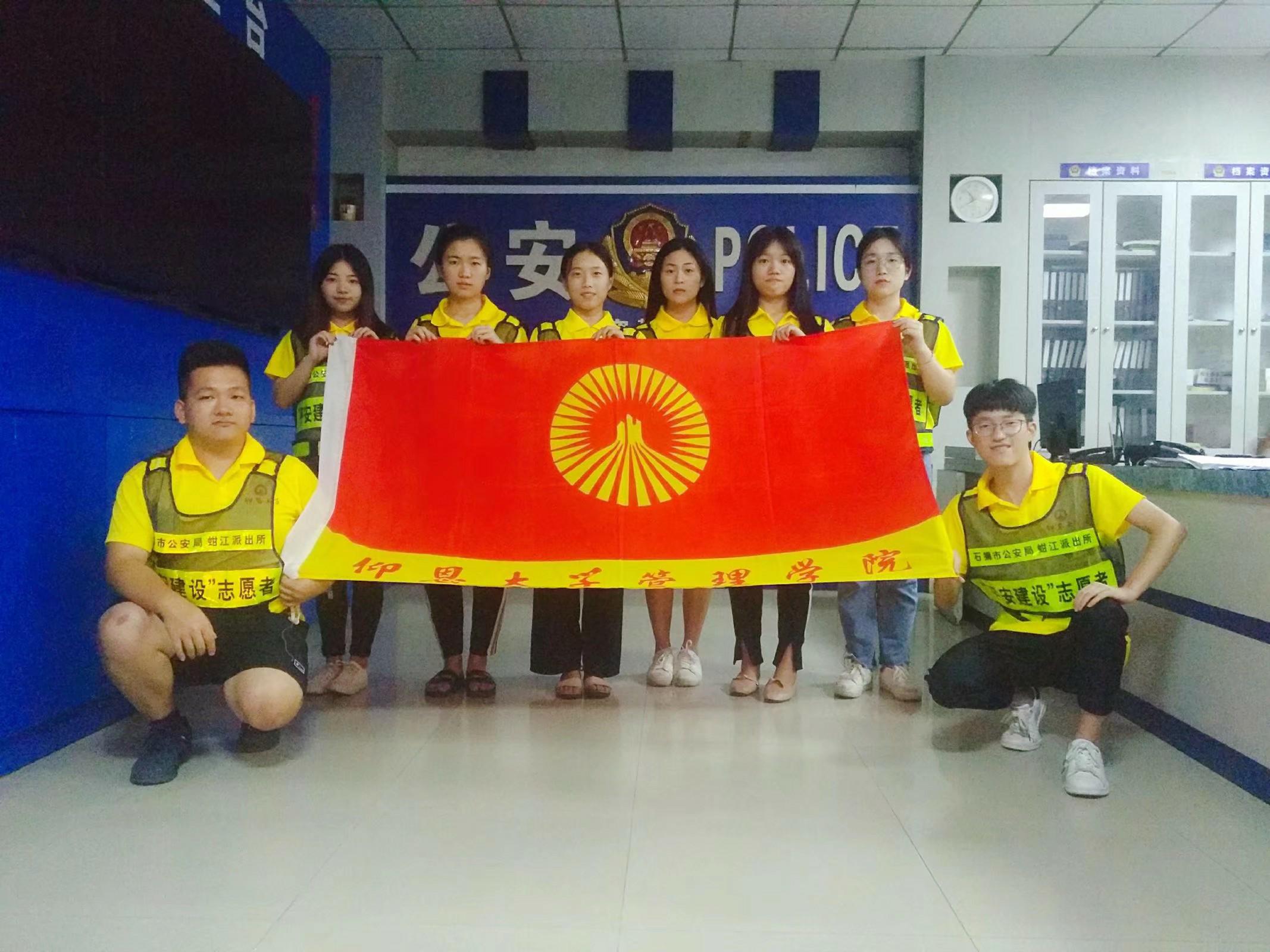 【ac米兰官网中文网站“燃烧青春”赴福建省石狮市蚶江派出所外来工之家暑期实践队】实践队成员出警合照