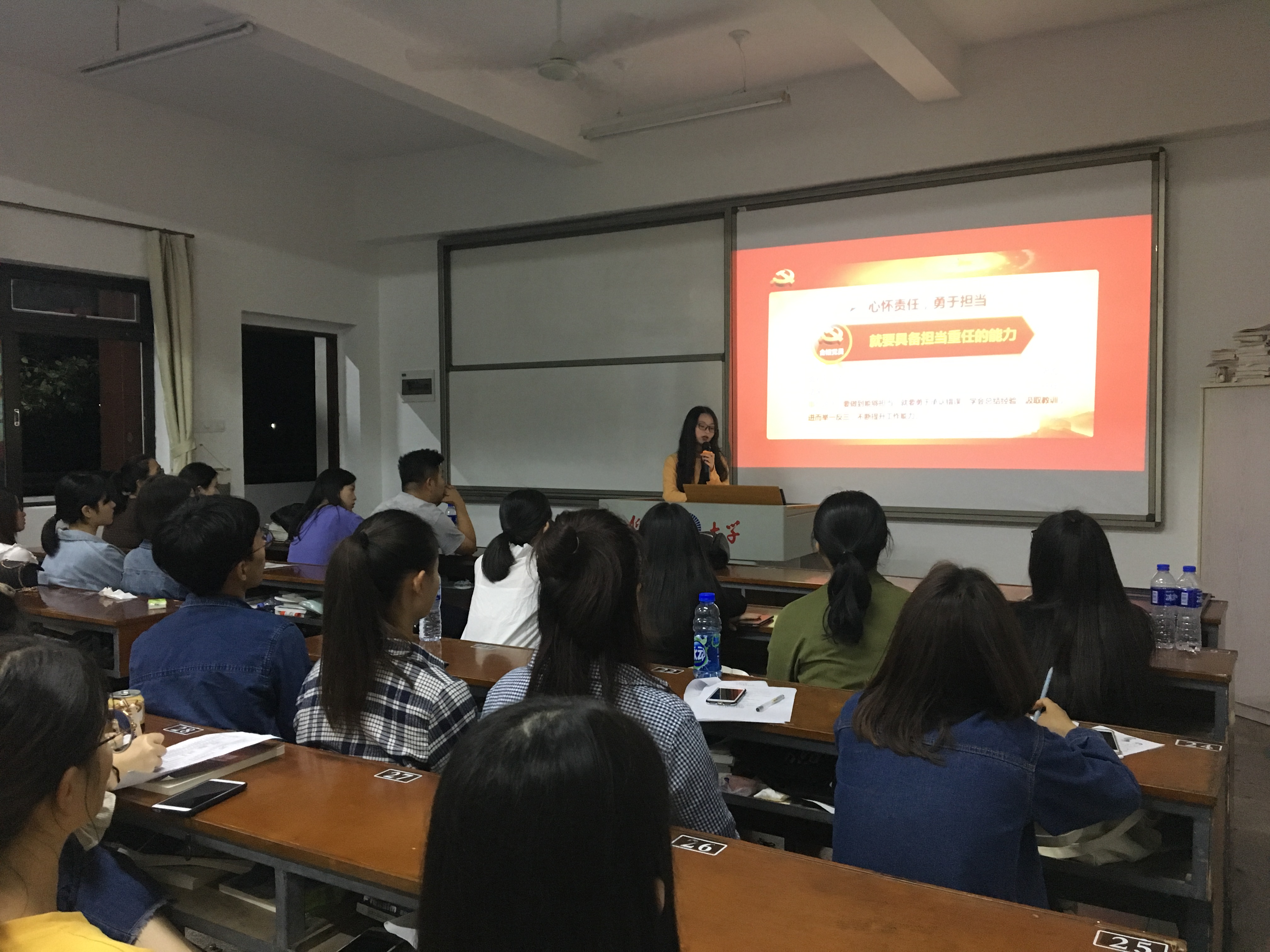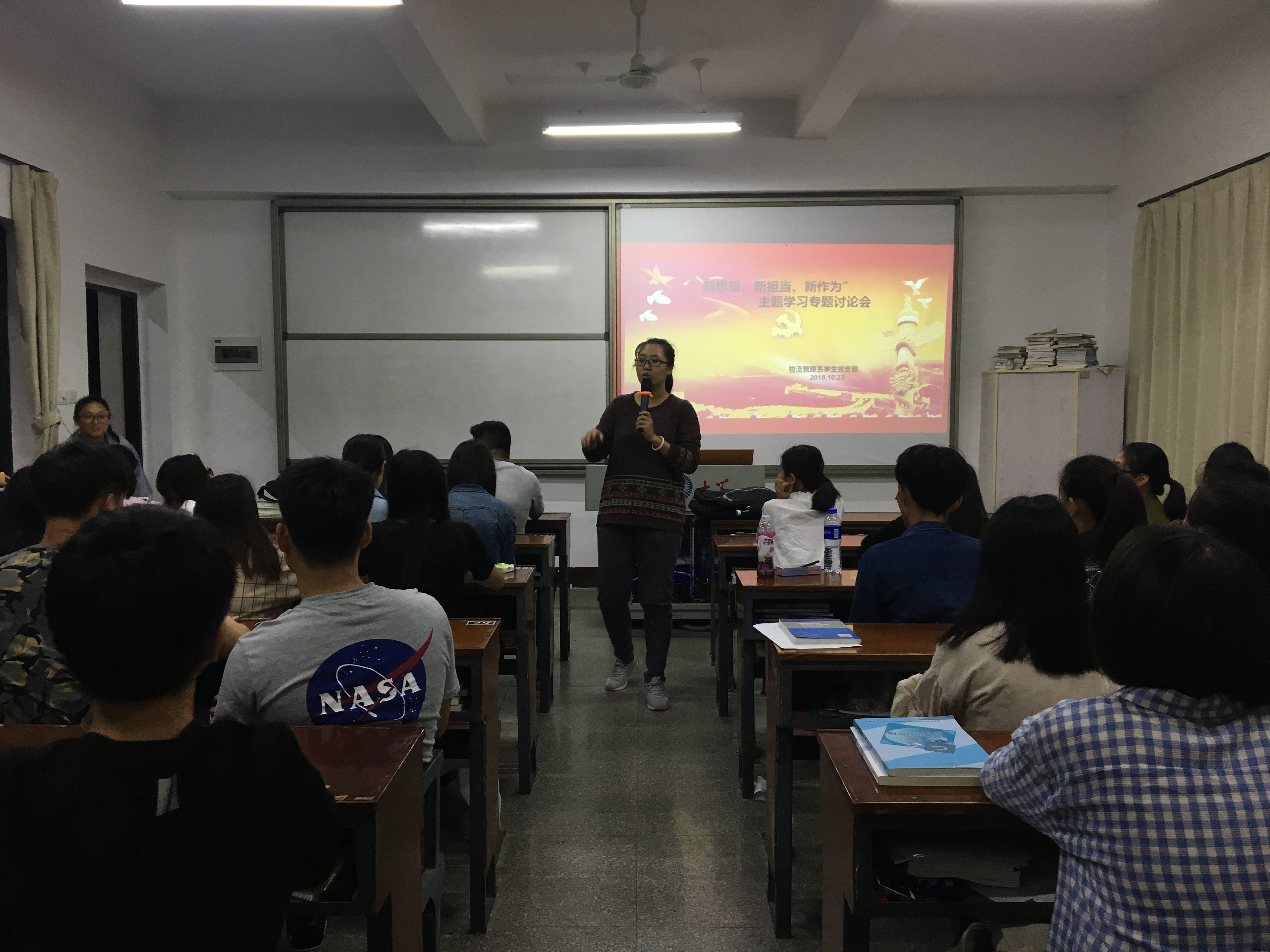 为提升全体党员和入党积极分子的党性修养,10月23日晚上,物流管理系学生党支部在第一教学区共和楼312开展了“新思想、新担当、新作为” 专题学习讨论会,物流管理系党支部书记张梦媚老师参加本次专题会。
