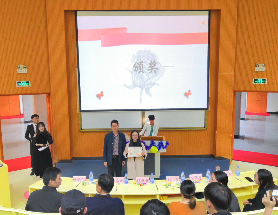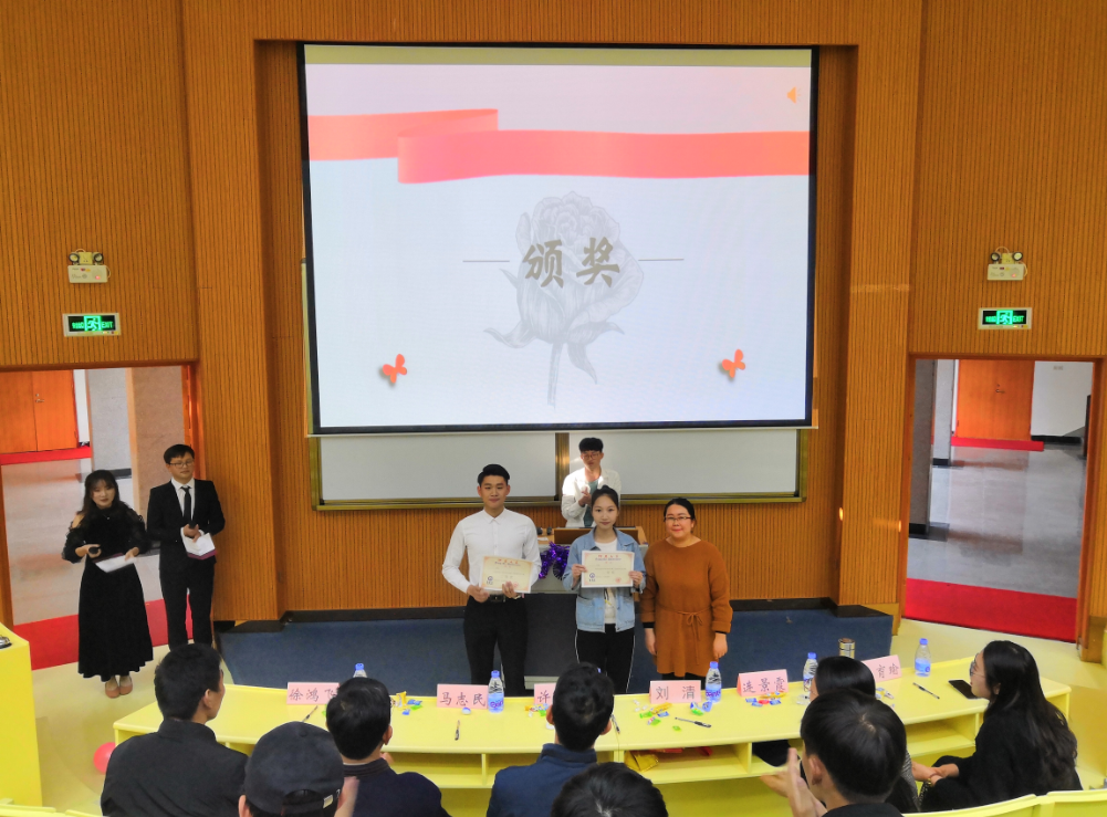 颁奖环节 经过激烈角逐,16行政管理1班荣获一等奖,16工商管理2班和17市场营销1班荣获二等奖,17物流管理1班、17工商管理2班和16市场营销2班荣获三等奖。(谢静、王茂林/文 秦祥钦/图)