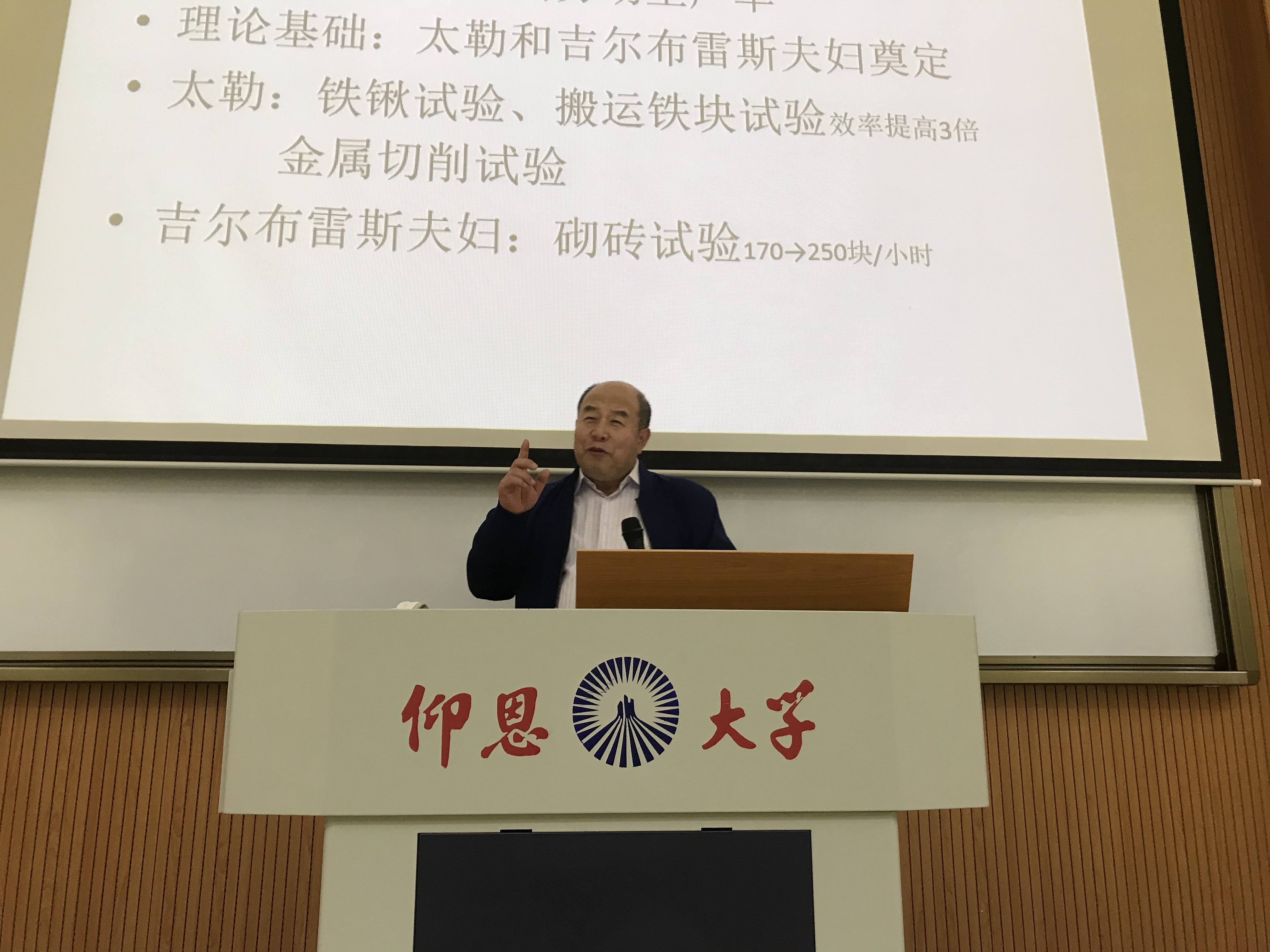 徐瑞园教授担任主讲 徐瑞园以“工业工程在企业的应用”为题,围绕工业工程与企业管理发展、工业工程的应用、工业4.0与中国制造2025、工业工程专业就业发展等方面进行阐述。他援引美国大量生产方式与日本丰田精益生产方式等例子阐明人类对工业工程的研究由来已久,指出工业工程是一门综合性很强的交叉学科,又是一门技术和管理有机地结合的边缘科学。他凭借着自己对工业工程学科专业知识的深度了解,用大量详实的案例证明了工业工程专业无限的发展潜力,为现场师生描绘出工业工程专业广阔的发展前景。他希望各位学子刻苦学习,为学校工业工程专业建设添砖加瓦。