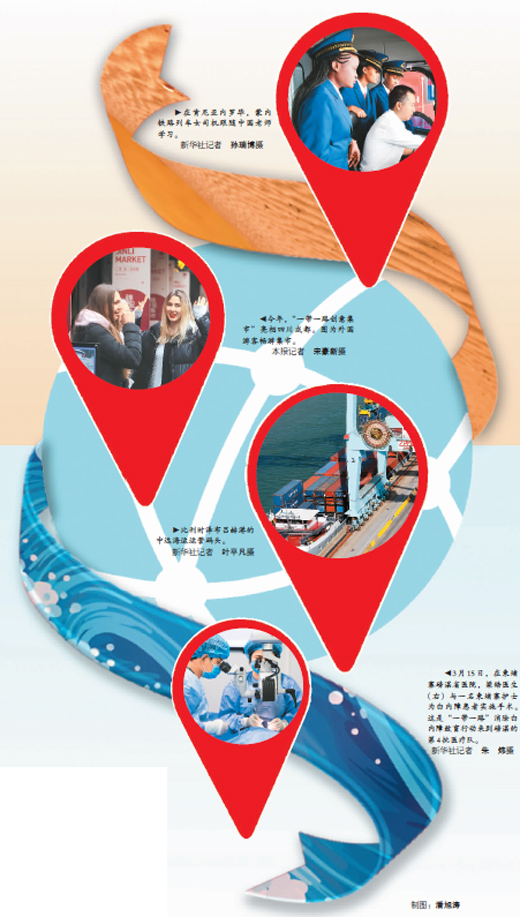 “一带一路”是开放的,是穿越非洲、环连亚欧的广阔“朋友圈”,所有感兴趣的国家都可以添加进入“朋友圈”。“一带一路”是多元的,涵盖各个合作领域,合作形式也可以多种多样。“一带一路”是共赢的,各国共同参与,遵循共商共建共享原则,实现共同发展繁荣。这条路不是某一方的私家小路,而是大家携手前进的阳光大道。