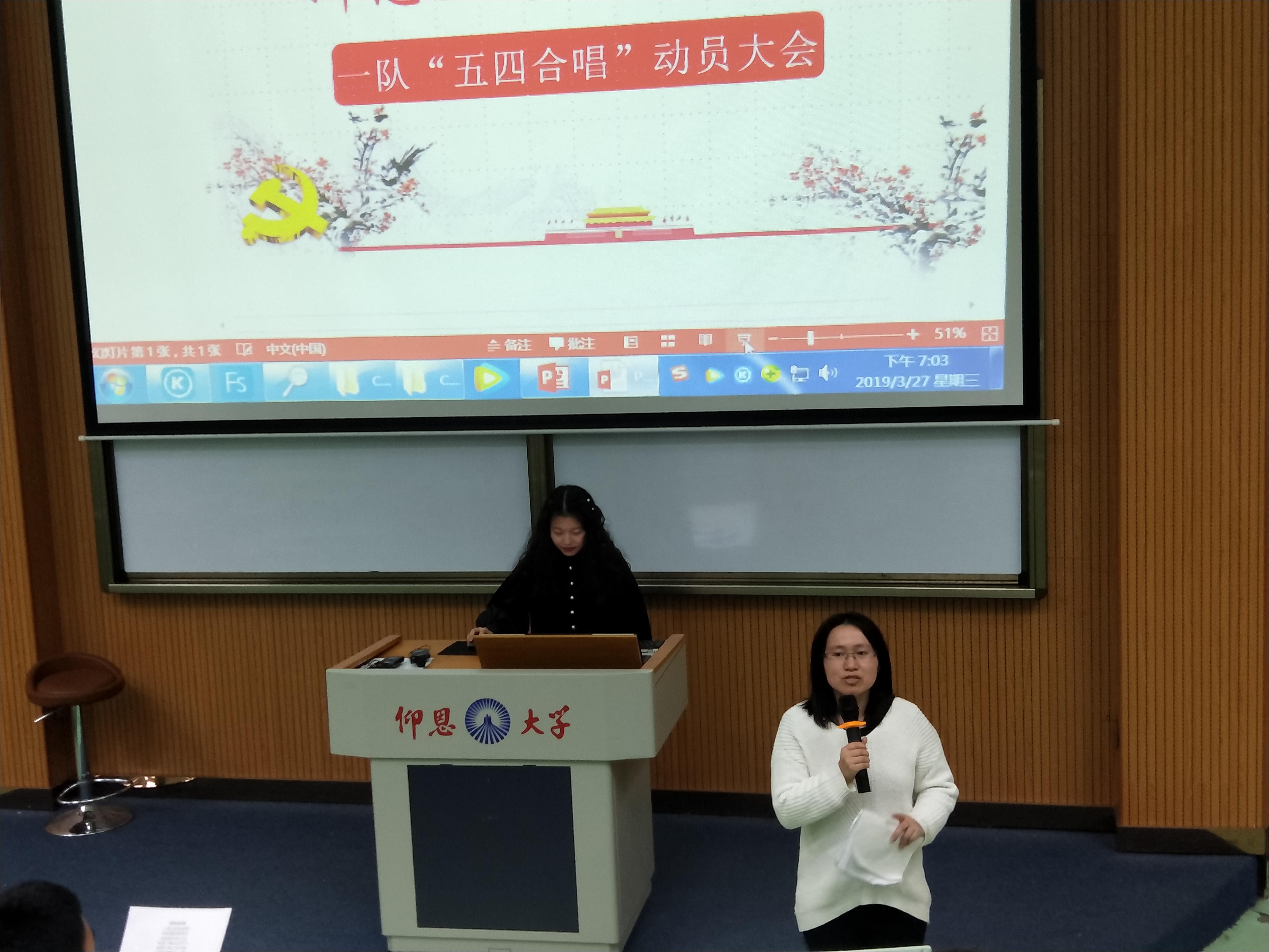 为纪念五四运动100周年和庆祝建国70周年,响应学校五四合唱节“爱国、感恩、奋进”的主题号召,3月27日晚,由工商管理系与物流管理系组成的管院一队(五四合唱决赛队伍)在和昌教学楼乐之讲堂召开五四合唱动员大会。
