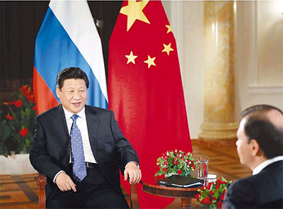 2014年2月7日,国家主席习近平在俄罗斯索契接受俄罗斯电视台专访。新华社记者 兰红光摄