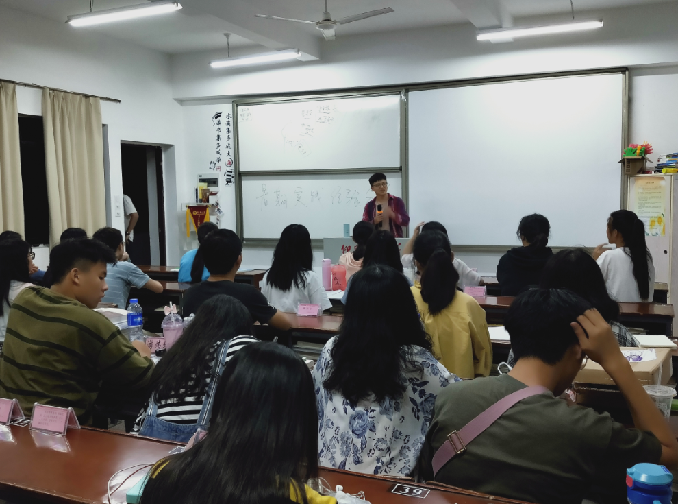 刘振涛学长宣讲 本次宣讲不仅提升了在场18级同学对暑期实践的信心,更为同学们开展暑期实践提供了一条可鉴之路。(黄永祺/文 谢春婷/图 审核:杜心田)