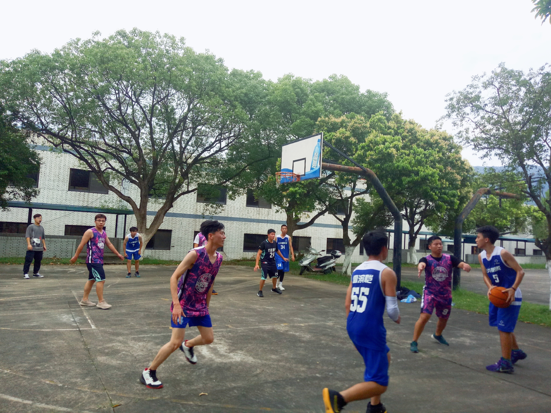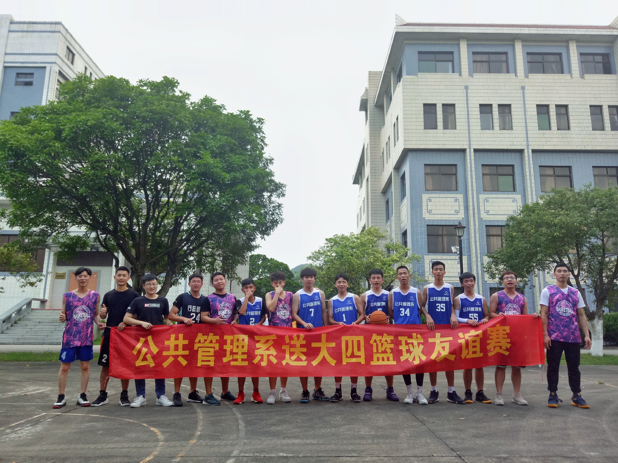 6月17号下午,公共管理系在多功能报告厅对面的篮球场举行了一场送大四篮球友谊赛,由大一大二队vs大三大四队。