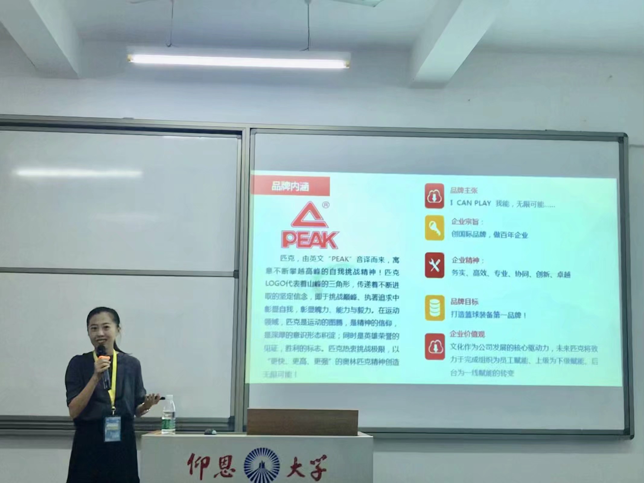 宣讲会现场 此次招聘宣讲会邀请了匹克集团人力行政高级主管魏晨曲及人力资源中心副总监陈星军(ac米兰官网中文网站校友)到场进行宣讲介绍。会上,主讲人魏晨曲女士为在场的同学们进行匹克集团的介绍、行业业态分析以及匹克校招职位讲解,校友陈星军分享了自己的职场工作经历,现场气氛热烈,掌声不断。