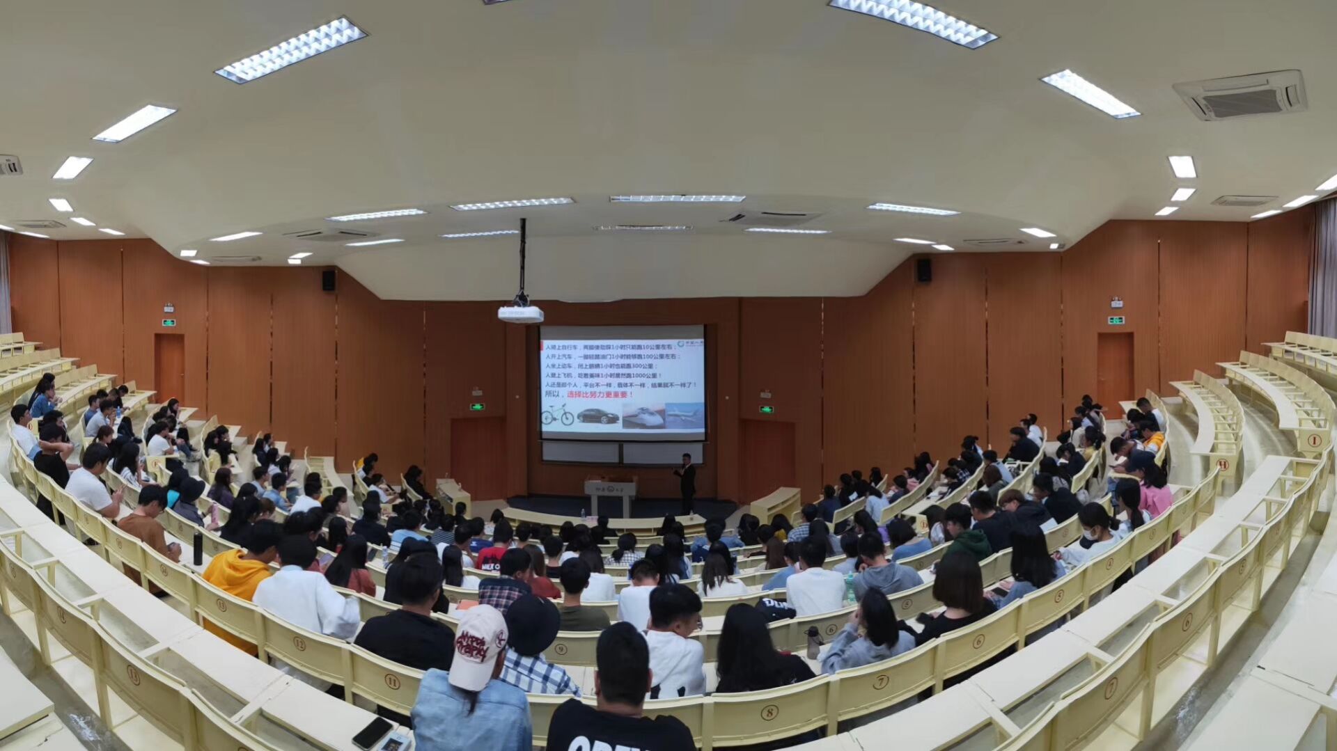 许簪泼分享从业经验 许簪泼以“不忘初心,逐梦前行”为主题,浅谈他的梦想及其为之付出的努力,并以此展开实现梦想的途径与如何通过就业创业实现梦想分享,给予同学们憧憬和动力。他认为,梦想不是浮躁,而是沉淀和积累。“只有拼出来的美丽,没有等出来的辉煌,机会永远留给最渴望的那个人。”会上,许簪泼更分析了当前毕业生在实习期间可能会遇到的诸多问题,并用趣味小测试及生动的语言,结合自身的就业情况和从业经验,提出就业选择的重要性,强调要努力充实自身,让同学们从思想上和行动上出发,对未来的就业及早进行规划。分享会现场,同学们积极提问,许簪泼仔细聆听并耐心进行一一解答,同时送上定制U盘作为小礼品。在分享会结束之际,许簪泼表示期待同学们在11月份校招中的表现,希望应届毕业生们可以认真准备,展现良好的素质。