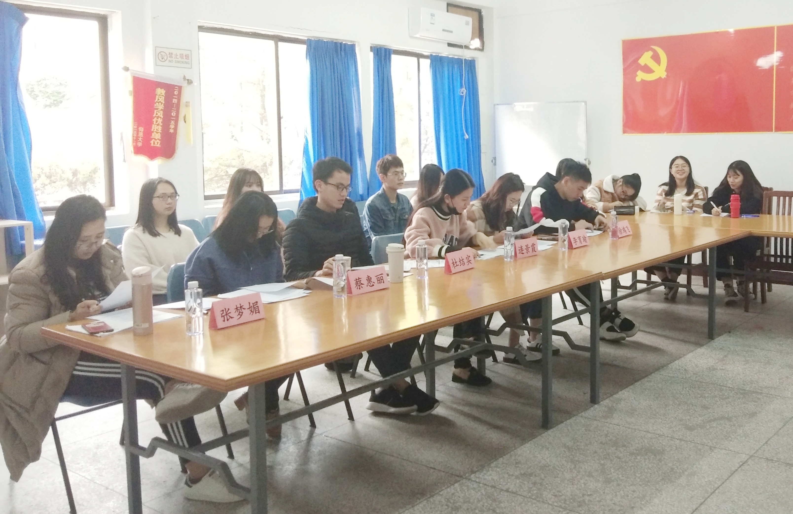 12月23日下午,我院于曼谷楼206举行一院四系团委(团总支)学生副书记、学生会主席团选拔面试。各系辅导员担任学生干部换届选拔面试的评委,校团委委派相关工作人员进行监督,保证面试的公平、公正、公开。