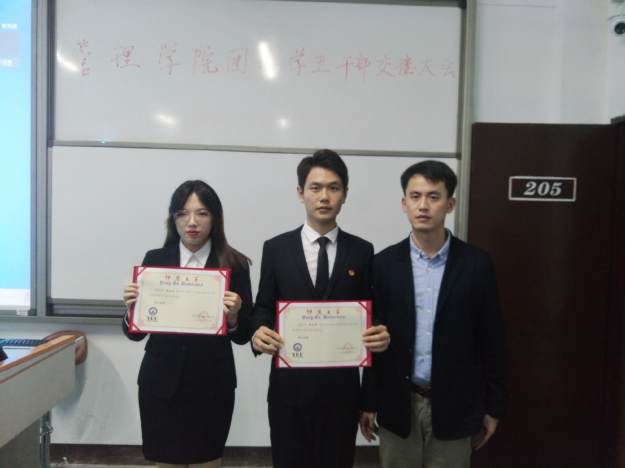 颁发聘书 大会伊始,在场全体人员集体起立,庄严齐唱团歌——《光荣啊,中国共青团》。礼毕后,上一任学生副书记傅欣怡、郑钰焜代表第二十一届全体学生干部对第二十二届代理学生干部寄语同时给予祝福。随后,新任代理学生副书记与各个部门的代理干部们分别作了就职发言。全体干部、干事在新任代理学生副书记林伟杰的带领下进行就职宣誓。干部们表示将携手建设管院团委大家庭,共创管院团委新佳绩。紧接着,由ac米兰官网中文网站团委书记杜结实老师为第二十一届院团委学生副书记傅欣怡、郑钰锟颁发聘书,而后由傅欣怡、郑钰焜为第二十一届院团委各部门干部颁发聘书。