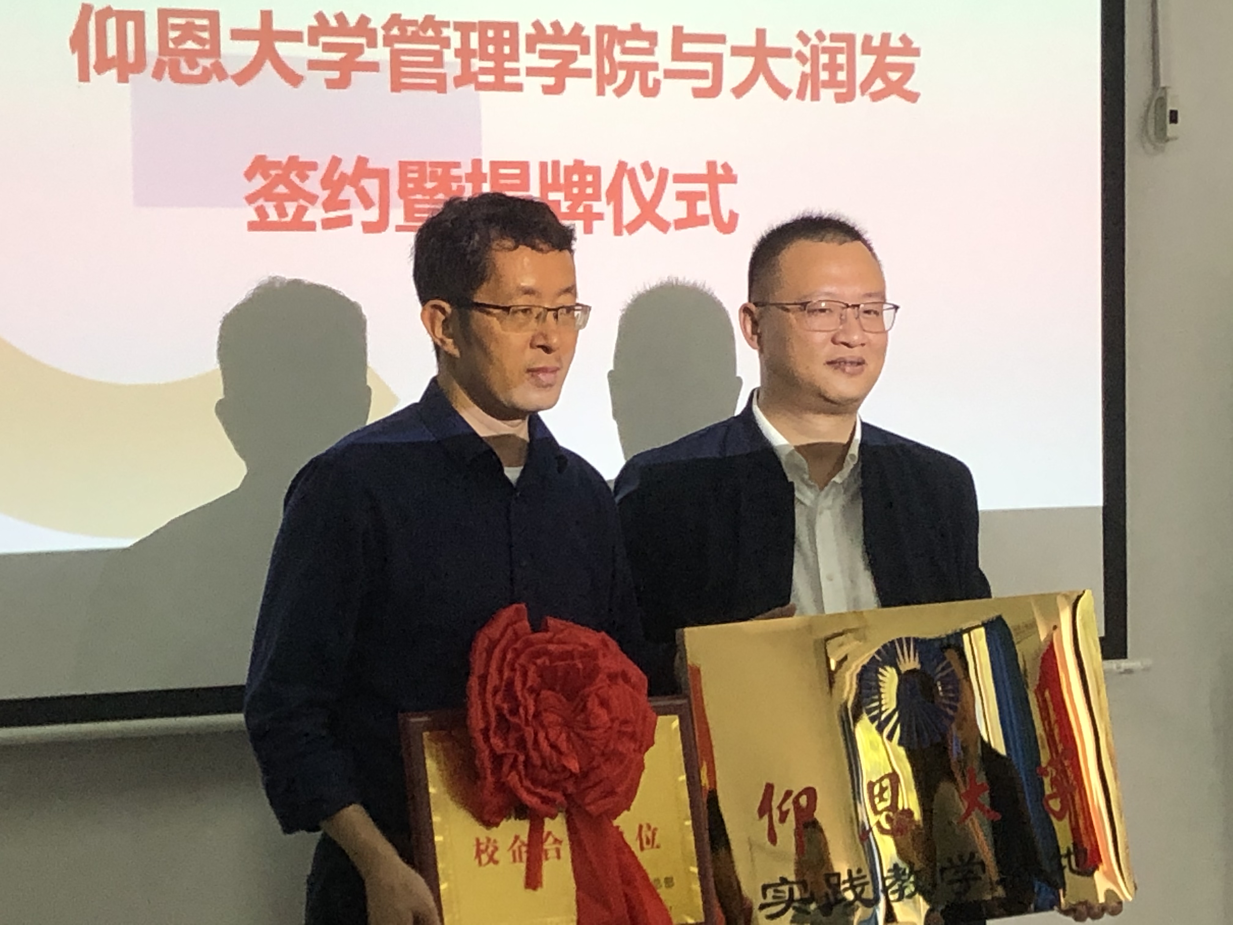 合影 学院与大润发商业有限公司签署校企合作协议,不仅有利于企业精神的传播和企业文化的宣传,而且拓宽了校企合作渠道,有利于增加大学生实践学习的机会,为学院培养应用型创新人才提供了有利条件。(张绣婷/文 杜心田/图)