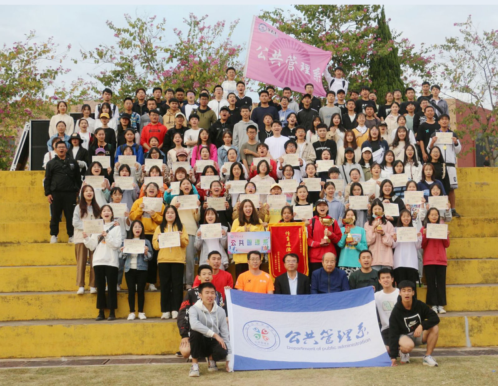 合照 荣誉满载而归,而我们却依然前行,此次运动会,让我们感受到了公共管理系学子们的热情与朝气,他们锻炼的是体力,激活的是生命,弘扬的是个性和青春活力!(公共管理系/图文 审核:曾上洪)