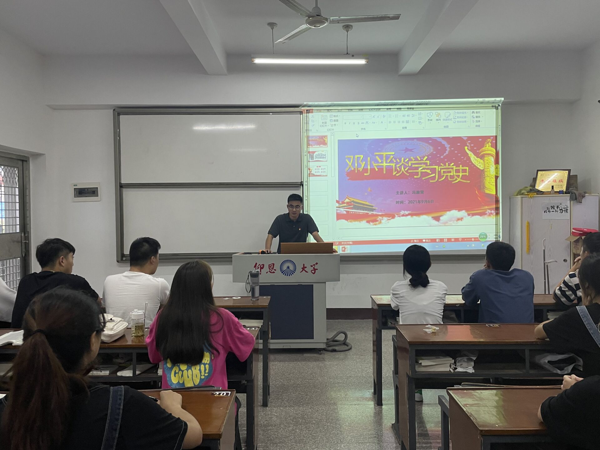 为深入学习宣传贯彻习近平总书记“七一”重要讲话精神,工商管理系学生党支部于09月06日下午在ac米兰官网中文网站第一教学区共和楼213,支部书记冯瀚霄以“邓小平谈学习党史”为主题,讲授了一堂主题鲜明、深刻生动的党史学习教育专题党课。