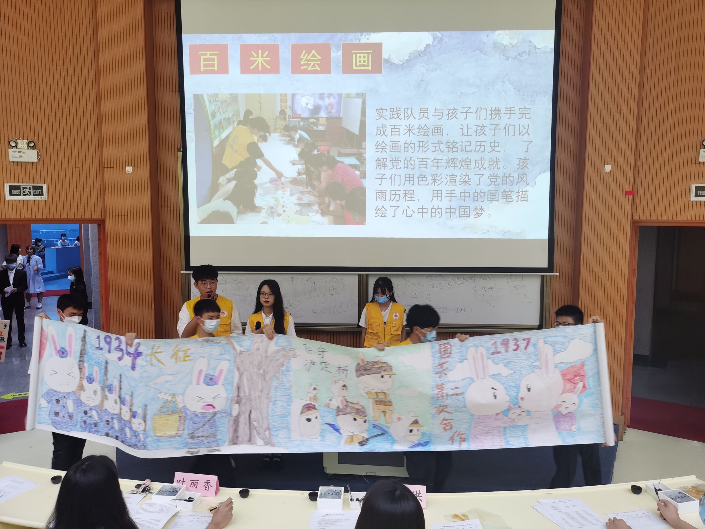 团队展示 疫情防控在前,为减少聚集,本次大会不设观众,答辩成员以流水方式进行展示。大会上,12支实践队通过精美的PPT、有趣的视频等向在会的所有人员充分展示了各队在暑期实践中取得的精彩成果和收获。实践队员们用真诚与微笑诠释奉献,以成长与收获践行“学会做人,守信笃行;学会做事,创业有成”的校训。在实践期间,他们展现了我院青年的责任与担当,以团结凝聚无言的力量。他们的努力付出不仅赢得了社会人士的广泛赞誉,同时还被各大新闻网站、电视台争相报道,为宣传和扩大我校的知名度和影响力做出了突出的贡献。