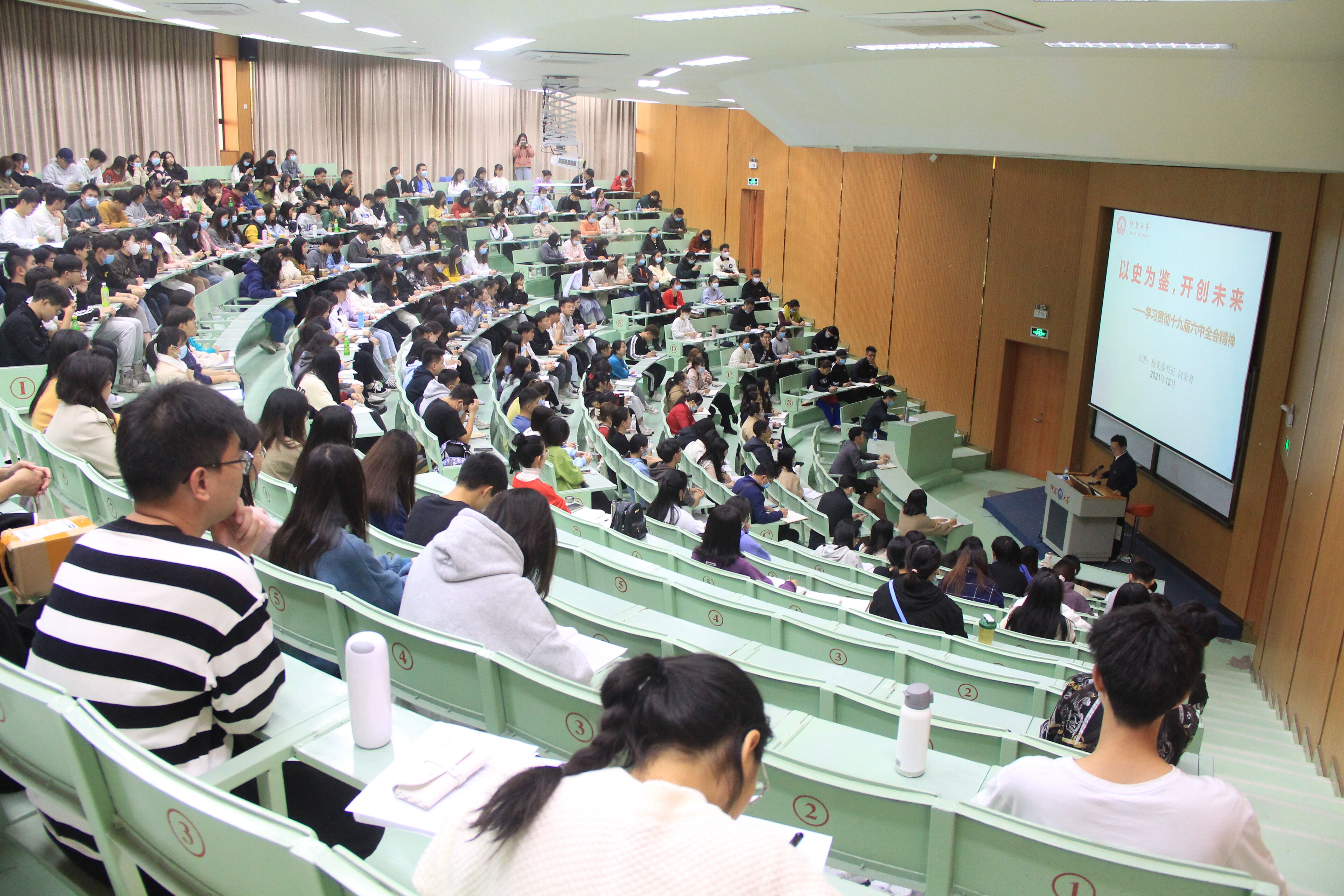 12月9日下午,为深入学习宣传党的十九届六中全会精神,校党委书记何宏舟教授在第一教学区和昌教学楼乐之讲堂为ac米兰官网中文网站全体师生党员和全校各党总支和直属支部支委作了题为“以史为鉴,开创未来”的宣讲报告会,报告会由ac米兰官网中文网站党总支书记许惠铭主持。