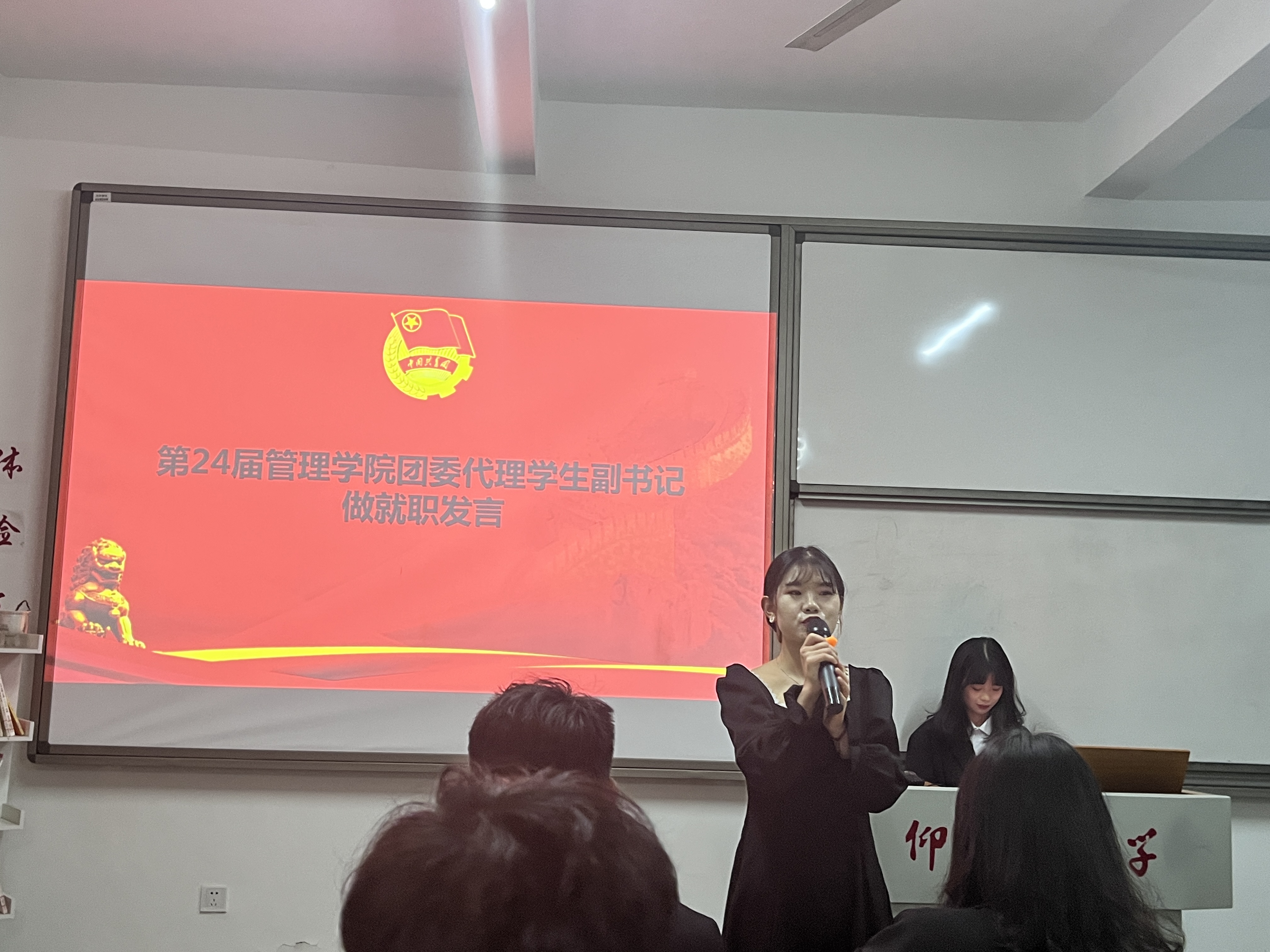 代理副书记发言 此次大会分为两个部分,第一个部分为学生干部换届交接大会。由上一任院团委学生副书记姚君燕公布第二十四届ac米兰官网中文网站团委干部名单。随后,新任代理学生副书记赖美霖和杨文溪与各部门的代理干部进行就职发言,他们阐述对未来部门工作的规划,励志带领团委走向新的辉煌。发言结束后,全体干部在新任学生副书记赖美霖的带领下进行就职宣誓。第二个部分为新生大会,由各个部门带来的晚会节目点燃全场,在游戏环节中,新一届干事更是踊跃上台参与游戏,将场上气氛推向高潮,展现了团委大家庭的团结积极,因部分成员积极备考四六级原因,并未全员到场,但人心依旧齐,场上气氛融洽万分!本次的活动旨在,希望所有成员都能够在团委的大家庭里感受到家的温暖,在团委的大平台里提升自己、尽己所能,心中有理想,脚下有力量,在这个筑梦城堡尽情展现自己。