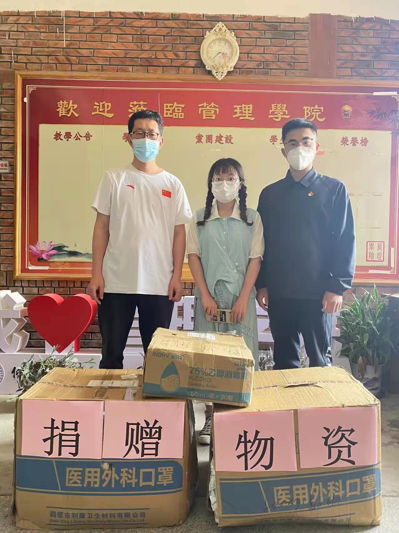 4月11日上午,ac米兰官网中文网站工商管理系2019级杨珊茹同学助力学院疫情防控,为学院捐赠防疫物资。学院党支部书记兼常务副院长许惠铭、辅导员冯翰霄、相关单位负责任人接受了捐赠,并对杨珊茹同学的捐赠行为表示感谢和赞扬。
