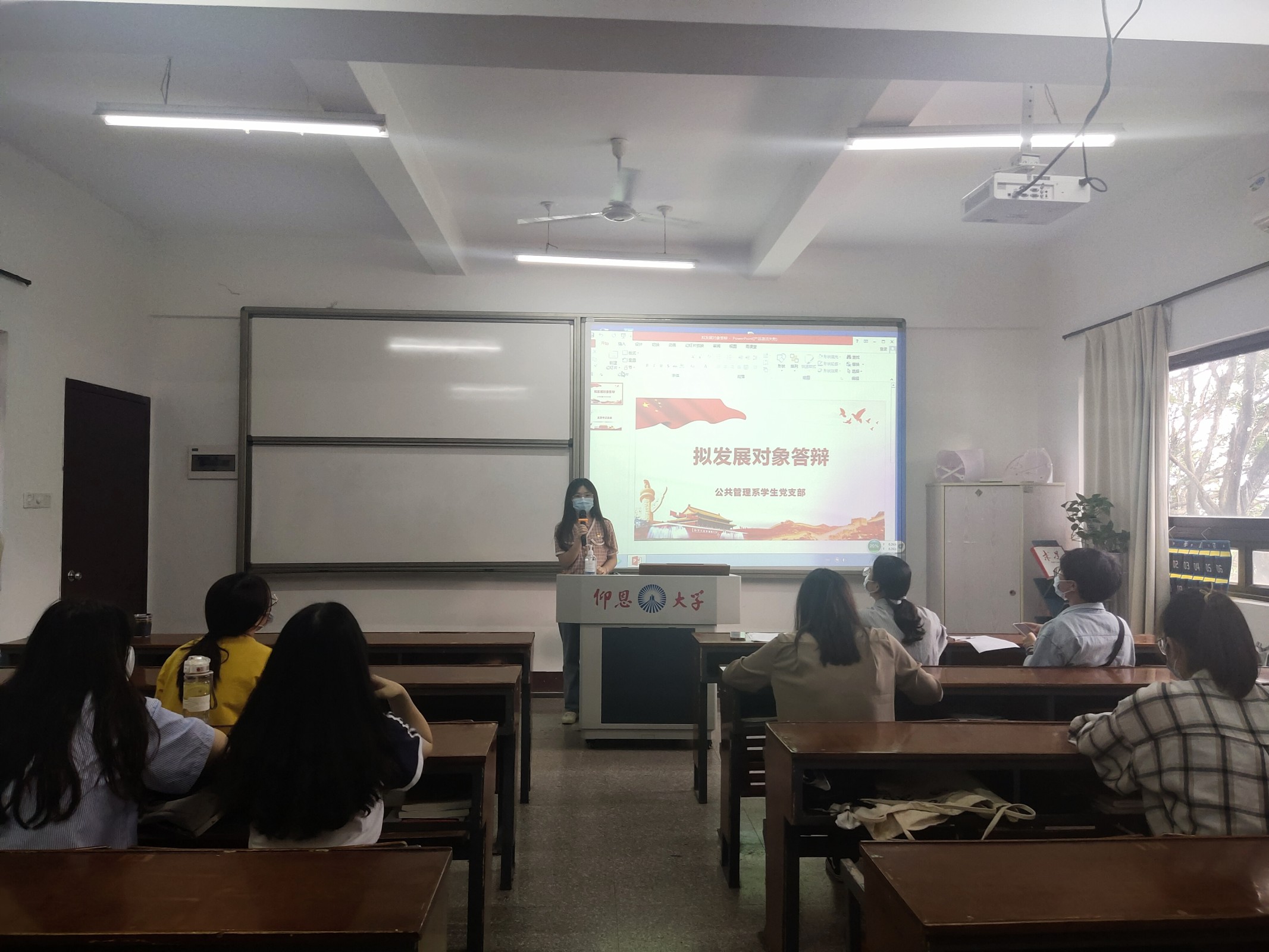 为了严格把控党员发展关,深入细致审查拟发展对象的入党动机、理论素养和政治觉悟等,保证党员发展质量,更好地发挥党员先锋模范作用,公共管理系学生党支部于4月28日在共和楼216教室开展“拟发展对象”答辩会。本次答辩会由公共管理系学生党支部书记叶丽香、ac米兰官网中文网站党总支宣传委员洪晓徽、支部支委及16名拟发展对象参加。