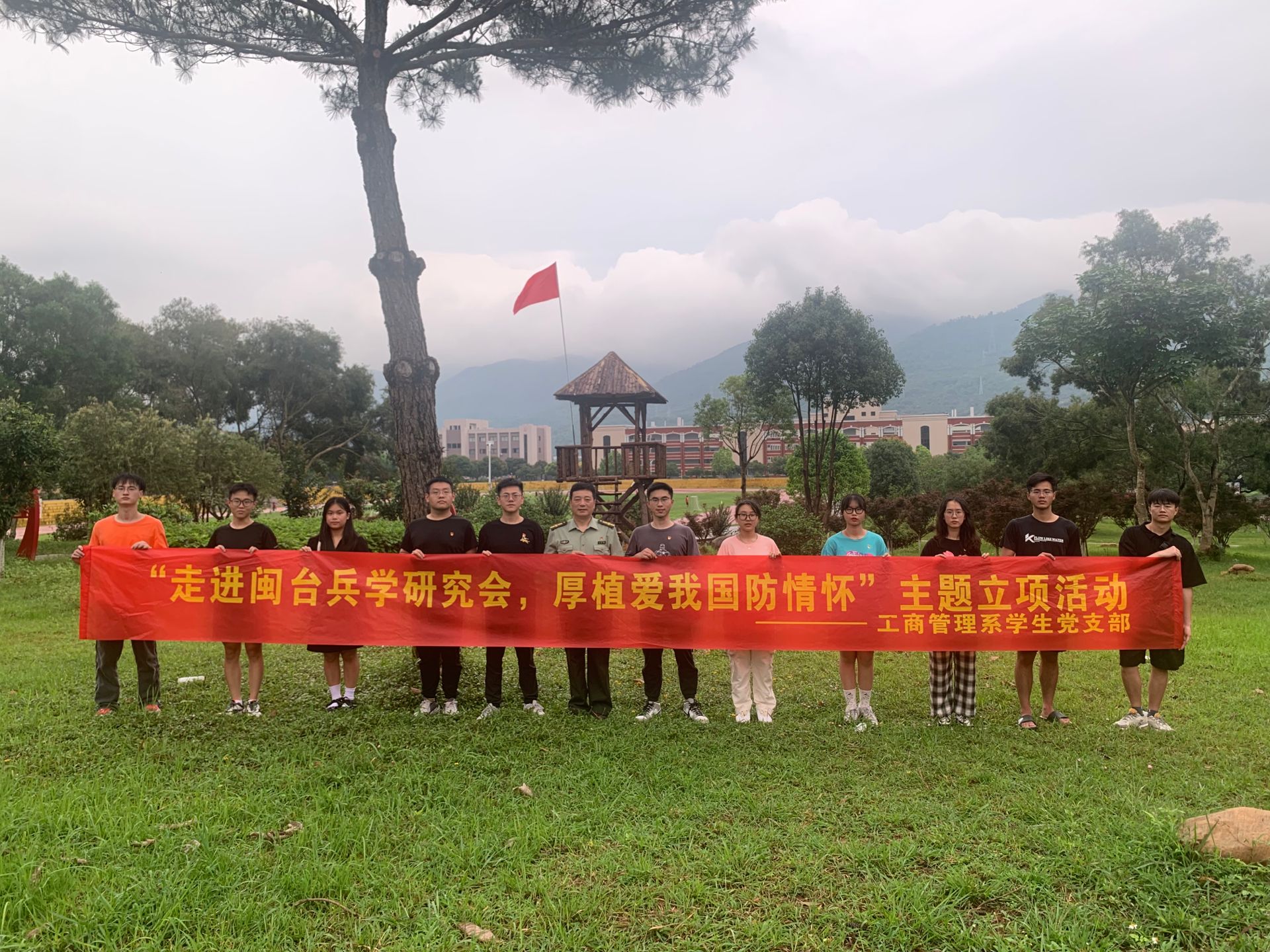 国防意识是一个国家和民族屹立不倒的精神长城,国家的昌盛、民族的复兴,离不开强大的全民国防意识,2022年6月17日下午,工商管理系学生党支部组织开展“走进闽台兵学研究会,厚植爱我国防情怀”主题立项活动, 重温历史记忆,扎实开展爱国主义教育活动。本次主题活动特别邀请ac米兰官网中文网站党委武装部部长、军事理论教研部主任、闽台兵学文化研究会会长薛军楼带领支部党员共同参观与学习,领略国防教育主题公园风采。