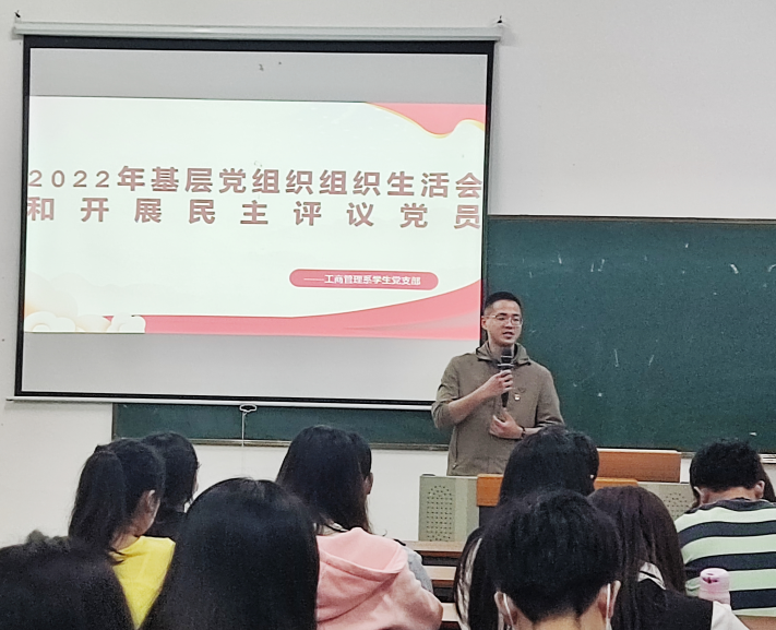 2023323日,工商管理系学生党支部于祥贤楼106室召开工商管理系学生党支部组织生活会暨民主评议党员会议。本次会议由陈俊霖同志主持,工商管理系学生党支部全体党员参加会议