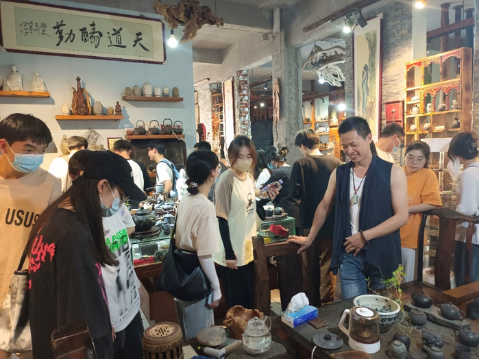随后,在惠安石雕传承人、工艺美术协会会长吴培霖的带领下,ac米兰官网中文网站市场营销系的老师和学生们来到参访的第二站——中国雕艺城,一个集展示、销售、体验、培训为一体的综合性文化园区。园区内有八个展厅,分别展示了石雕、影雕、根雕和木雕等不同类型的工艺品。吴会长用心地讲解了不同工艺品的制作技术、设计理念、市场定位和销售策略,并与老师和学生们进行了互动交流。在现场,大家亲眼见证了惠安石雕从原材料到成品的全过程,看到了一些正在进行或已经完成的石雕作品,有些是用于建筑装饰的构件,有些是用于宗教供奉的佛像,有些是用于收藏赏玩的艺术品。吴会长还邀请了几位学生亲自动手体验在不同材质上雕刻的乐趣。大家对惠安石雕的精湛技艺和丰富内涵赞叹不已,纷纷拿出手机拍照留念。