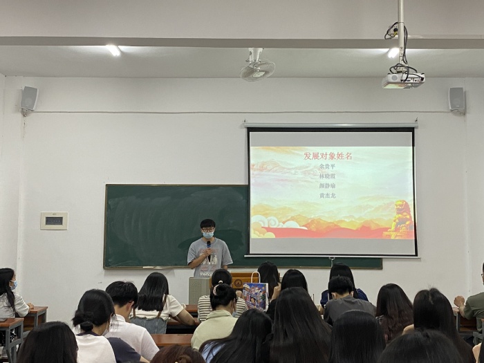 2023年5月31日下午,工商管理系学生党支部于祥贤楼101室召开预备党员接收大会。此次会议由陈俊霖同志主持,支部全体成员参加本次会议。