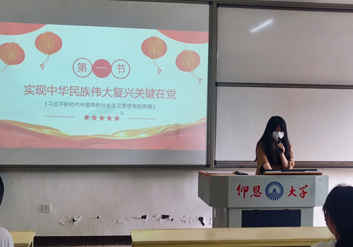 首先,黄林艳同志以PPT的形式,从中国共产党的领导地位、本质特征、历史使命三个方面讲述了党的领导是党和国家的根本所在、命脉所在,是全国各族人民的利益所系、命运所系。随后黄林艳同志带领支部成员重温入党誓词,在铿锵的誓言中,支部成员的初心收到了洗礼,理想信念更加坚定。最后,黄林艳同志通过本次党日活动向支部成员发出号召,她表示,作为党员队伍的一分子,我们要时刻谨记自身肩负的责任和时代赋予我们的使命,传承红色基因,坚定信念跟党走,珍惜当下,努力学习,牢记共产党“全心全意为人民服务”的根本宗旨,勇于奉献,用青春和汗水,抒写新时代篇章,做新时代合格党员。