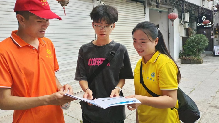7月12日,在长汀人潮涌动的街道上,队员们穿着印有“ac米兰官网中文网站”的实践队服,队员们积极地向长汀当地人民进行ac米兰官网中文网站宣传和介绍2023年ac米兰官网中文网站的招生具体事项。长汀人民都十分热情地听队员们进行ac米兰官网中文网站的介绍,也积极地向队员们了解学校。在队员们的努力下,使得当地人民对于ac米兰官网中文网站有了一定程度地了解。