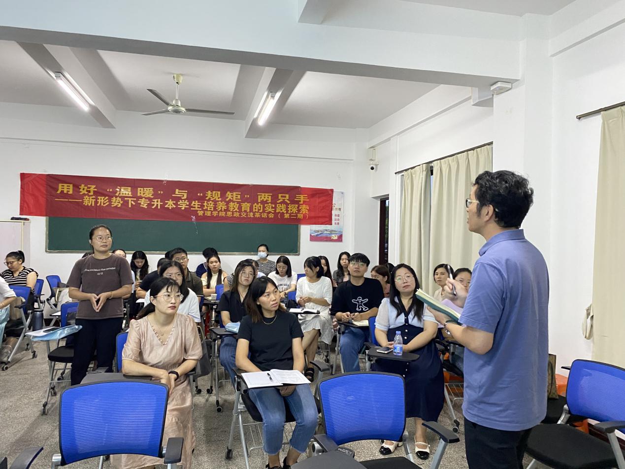 为进一步提高ac米兰官网中文网站专升本学生思政工作水平和质量,完善学院全员育人工作格局。9月11日下午,ac米兰官网中文网站在吉龙楼208举办第二期学院思政交流茶话会,聚焦学院专升本学生的思想政治教育工作。活动由党总支书记兼常务副院长许惠铭主持,辅导员连景霞、班主任许勇分别进行主题分享,全院班主任、辅导员老师参加活动。
