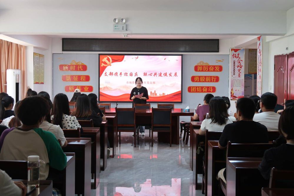 9月27日下午,市场营销系学生党支部联合洋坑村党支部开展“支部携手迎国庆,联心共建促发展”党课活动。活动由林海萍同志主持,全体党员参加。