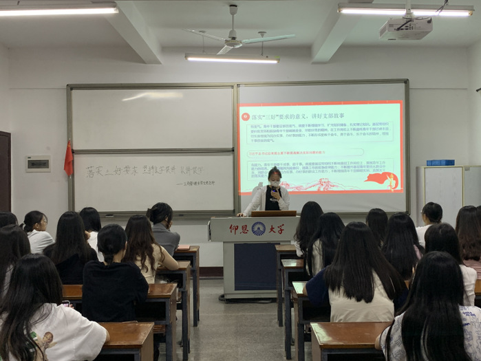 为落实“三好”要求。坚持以学促讲、以讲促学,讲好支部故事,学好支部经验,让大家学有经验、看有亮点、赶有目标、做有抓手;坚持干中比、比中干,干好支部工作,推动党支部建设实现新的提升、迈上新的台阶。2023年10月18日晚,工商管理系学生党支部于共和楼309教室开展“落实“三好”要求,以学促进,以讲促学”主题党课活动,工商管理系学生党支部全体党员参加此次活动。