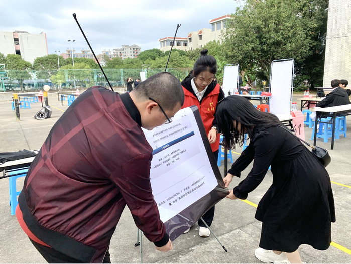 招聘会前期党员志愿者认真做好招聘会会场的各项布置工作,引导前来我校参加的各家企业到指定地点就位,并配合企业有序开展招聘工作,帮忙搬水、分发企业介绍单、张贴海报等,志愿者们分工明确,为前来参加面试的同学们提供了一个良好的招聘环境,也让同学们得到了更准确有效地帮助。