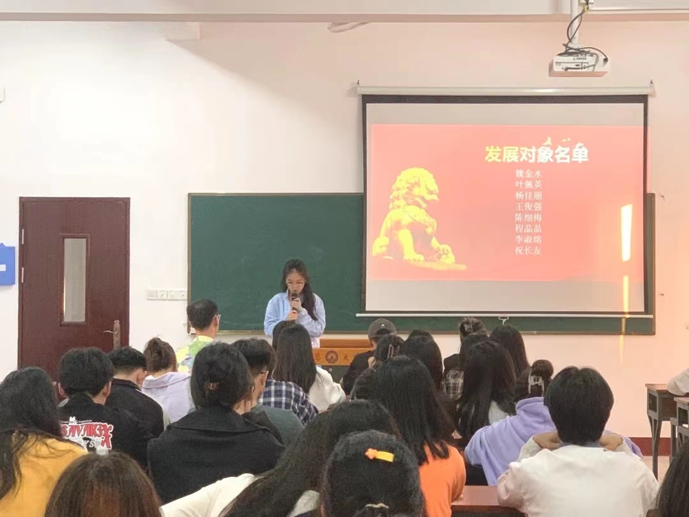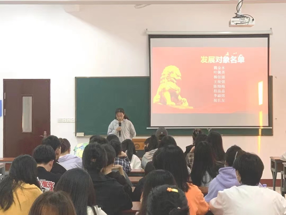 2023年12月11日下午,工商管理系学生党支部于祥贤楼209室召开预备党员接收大会。此次会议由陈鸿同志主持,支部全体成员参加本次会议。大会围绕魏金水、叶偑英等8名发展对象成为预备党员,并通过大会讨论与决定发展对象的入党问题。