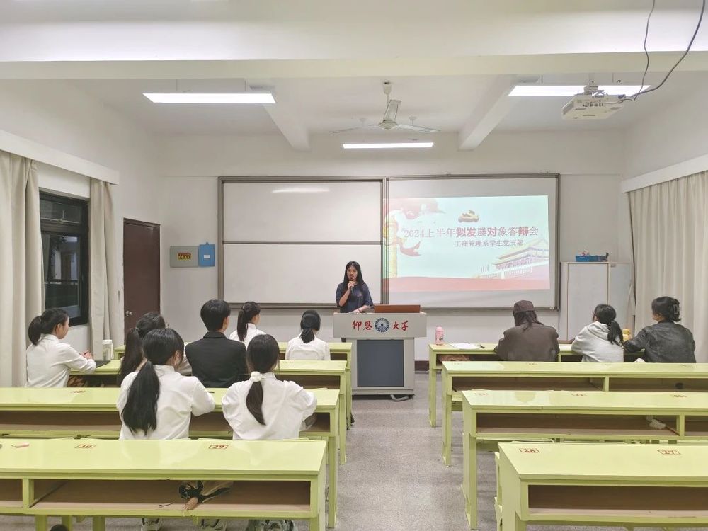 2024年04月17日晚上,工商管理系学生党支部于共和楼303室召开2024年上半年拟发展对象答辩会议。本次会议参会人员有工商管理党支部书记黄颖老师、支部支委以及拟发展答辩对象,会议由支部成员滕睿思同志主持。