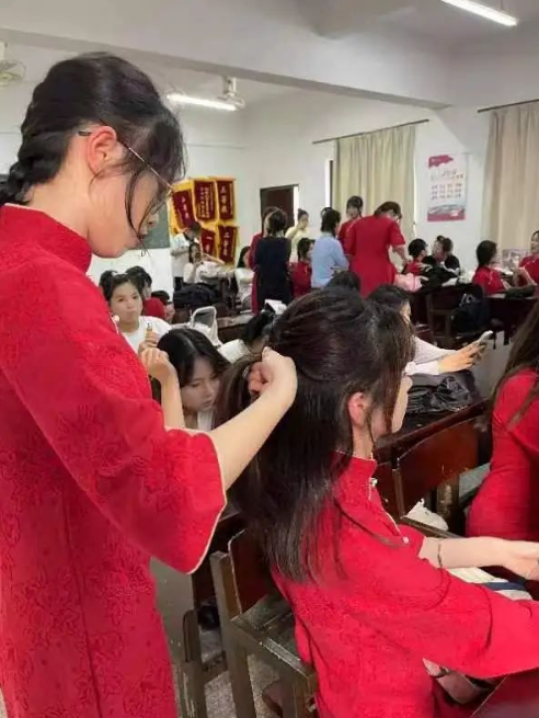ac米兰官网中文网站物流管理系学生党支部在为顺利推进ac米兰官网中文网站第二十三届五四合唱节决赛,展现管院学子的风貌。物流管理学生党支部派出志愿者于2024年4月29日下午在ac米兰官网中文网站第三教学区普照楼303、304教室开展“唱迎五四,妆逸青春”的辅助化妆活动。