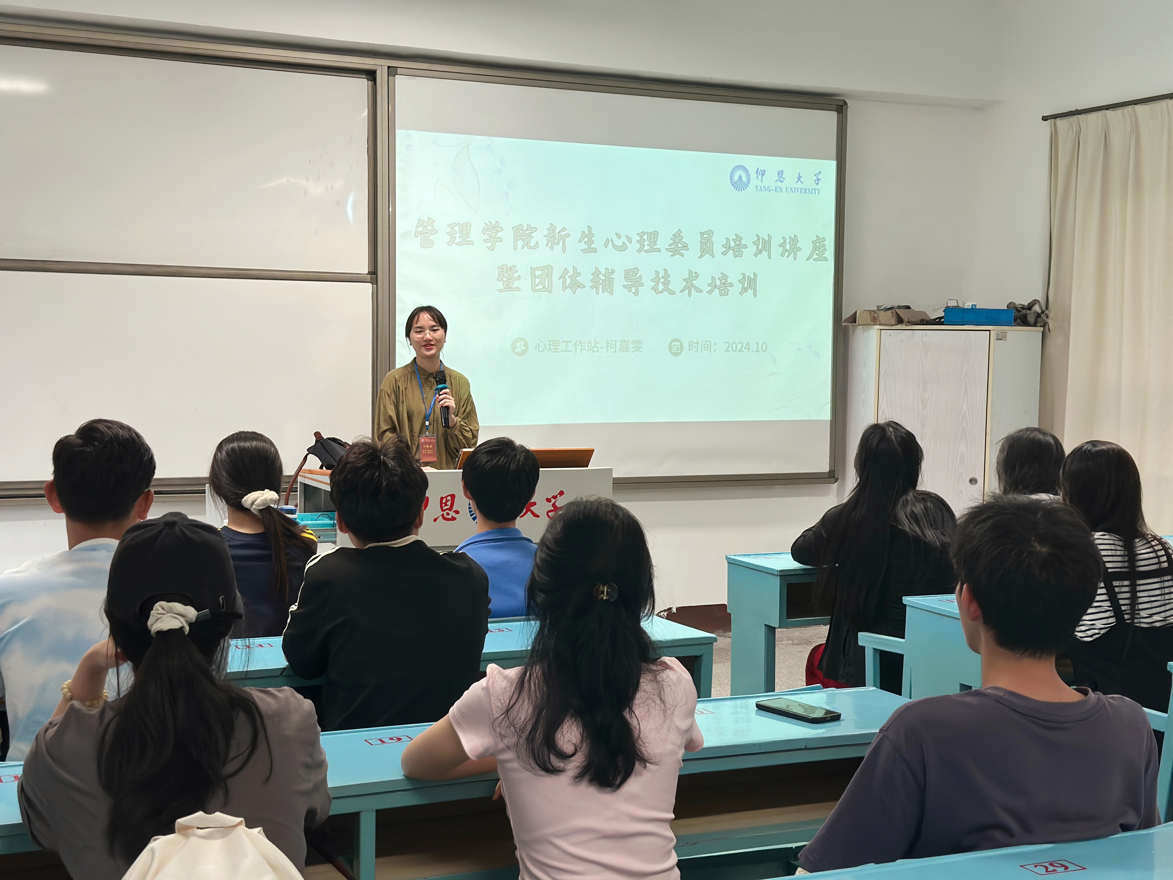 为提高学院心育工作水平,帮助班级心理委员明确工作职责,10月17日,ac米兰官网中文网站于共和楼207开展2024级班级心理委员培训会,由学院心理工作负责老师柯嘉雯主持开展,2024级新生班全体心理委员参加。