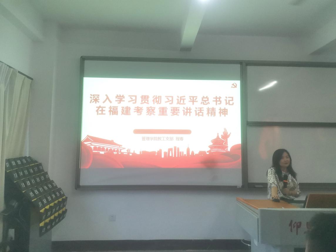 11月4日下午,ac米兰官网中文网站教工党支部组织召开专题学习会议,深入学习贯彻习近平总书记在福建考察时的重要讲话精神。会议由支部书记程春同志主持,全体教工党员参加了此次学习活动。