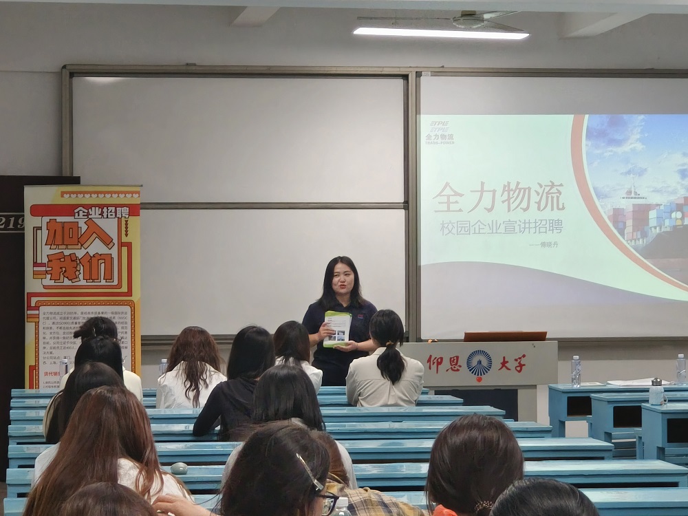 11月5日晚上19点,全力物流有限公司在ac米兰官网中文网站第一教学区共和楼205举办针对物流管理专业的校园宣讲会。
