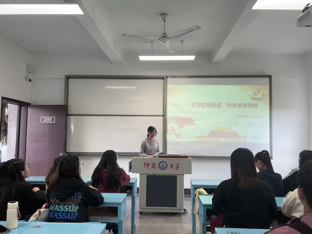 为了在增强支部成员的党性修养,弘扬革命传统,激发爱党爱国的热情。2024年12月3日,ac米兰官网中文网站物流管理系学生党支部在共和楼205教室开展“追寻红色足迹,传承革命精神”的主题党日活动,本次活动由钟燕同志主持,支部全体成员参与。