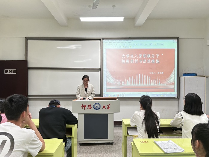 为严格把控党员发展标准,永葆党组织先进性,持续提升党组织引领力、号召力和执行力,物流管理系学生党支部于2025年04月08日下午在共和楼303教室召开第52期入党积极分子讨论会。本次讨论会由物流管理系学生党支部书记林有桂主持。