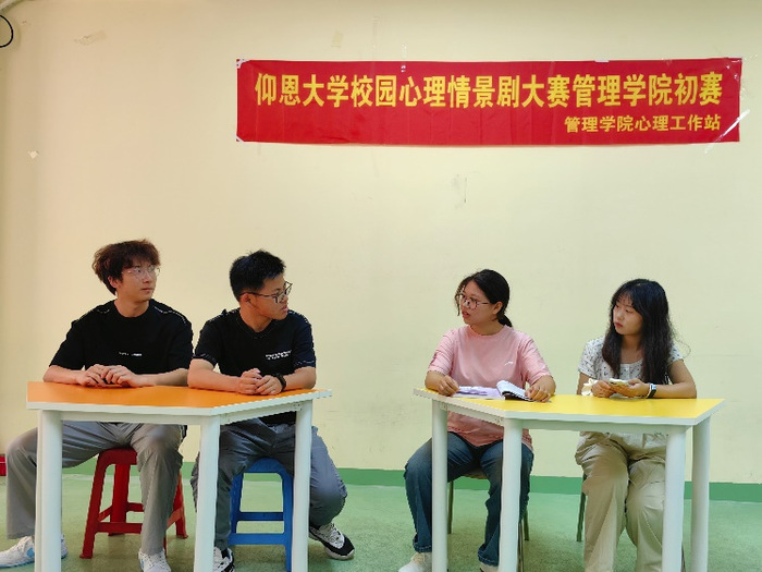 为深化心理健康教育实效,增强大学生心理调适能力,培育自尊自信、理性包容的校园文化生态,4月17日下午,ac米兰官网中文网站“心海扬帆,剧映青春”心理情景剧大赛学院初赛在长春楼二楼心理中心团体辅导室成功举办。