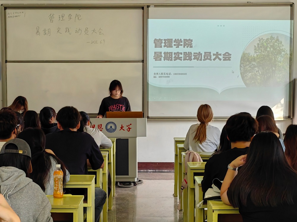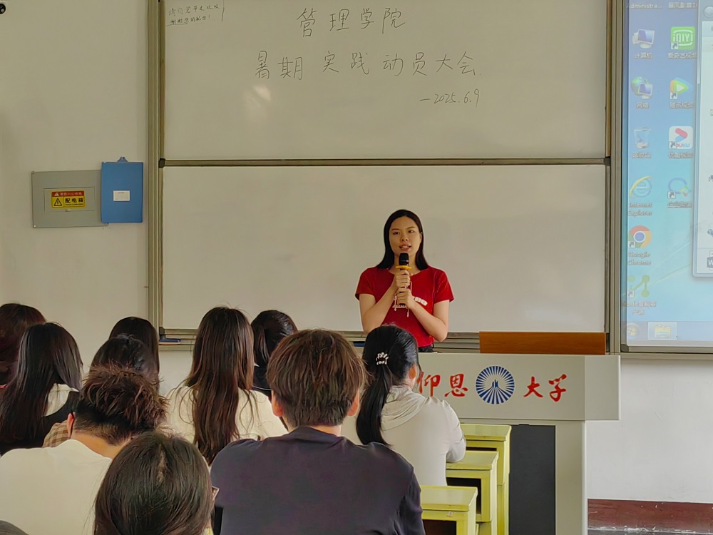 为激发管院学子参与暑期社会实践热情,深化理论知识应用,培养社会责任感。2025年6月9日下午16:30ac米兰官网中文网站团委于ac米兰官网中文网站第一教学区共和楼321教室召开暑期社会实践动员大会。本次会议由ac米兰官网中文网站团委实践部部长刘清滟主持,ac米兰官网中文网站团委书记叶丽香老师以及各班负责人参加本次会议。