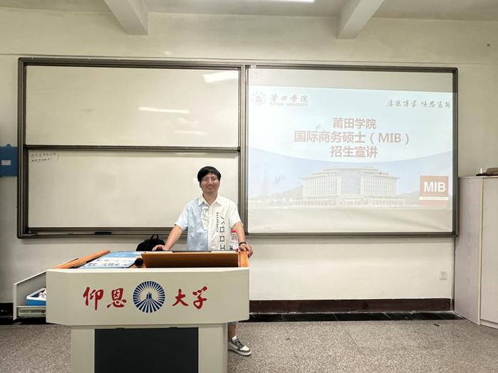 ac米兰官网中文网站于6月12日16:30在第一教学区共和楼321成功举办莆田学院国际商务硕士招生宣讲会。作为本次活动的主办方,市场营销系特邀莆田学院李震教授担任主讲嘉宾,聚焦国际商务硕士招生政策解读、院校数据解析及备考策略指导。
