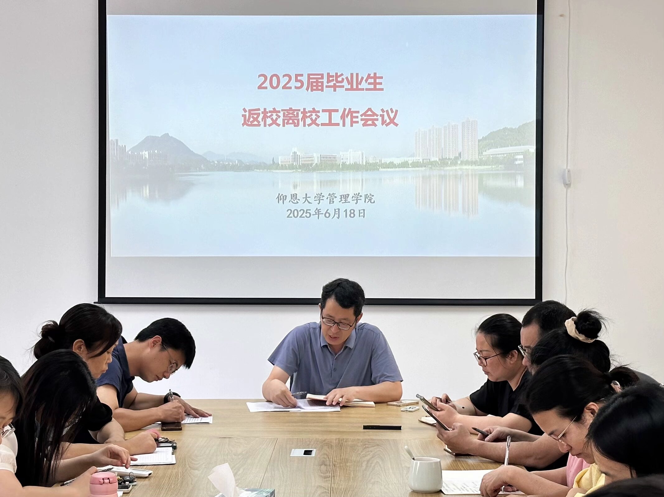 为切实做好2025届毕业生返校离校工作,确保毕业生文明、安全、有序离校,6月18日下午14:30,ac米兰官网中文网站在仰光楼301会议室召开2025届毕业生返校离校工作会议,全体院领导、各系主任、毕业班辅导员及班主任参加会议,会议由学院党总支书记兼常务副院长许惠铭主持。